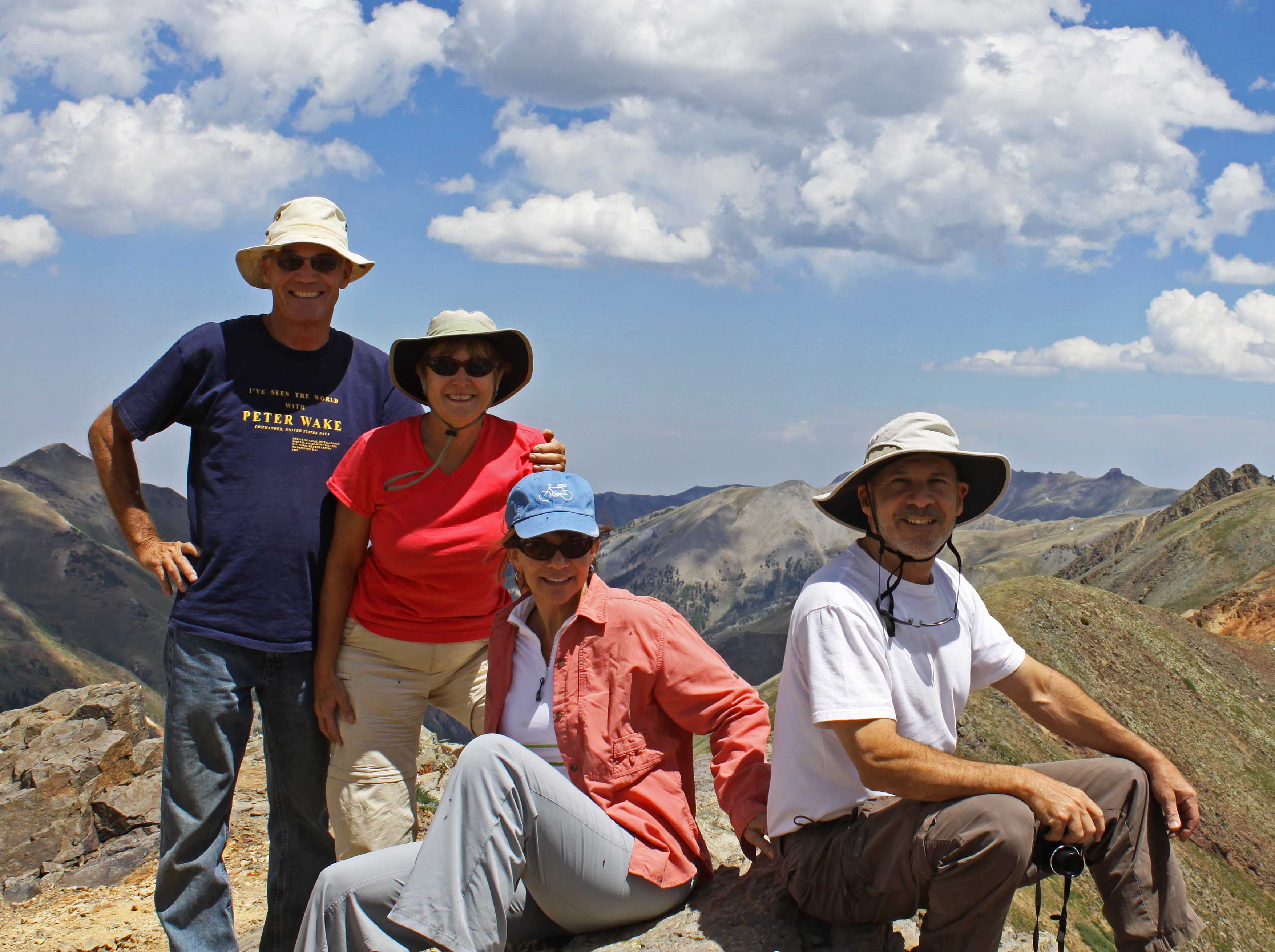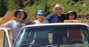 In the midst of a Southwest heat wave friends Marty and Ann came to visit Durango from Pine Island. We hit the ground running and within 48 hours we rode the Durango and Silverton Narrow Gauge Railroad to Silverton, had a great dinner at Cyprus Cafe and had an all day tour of the high country of the rugged San Juan Mountains above Silverton. The train ride was spectacular as usual although Silverton was shrouded in smoke from the recent Weber Canyon fire near Mancos. We were concerned about our four wheel drive tour the next day since visibility was so limited.