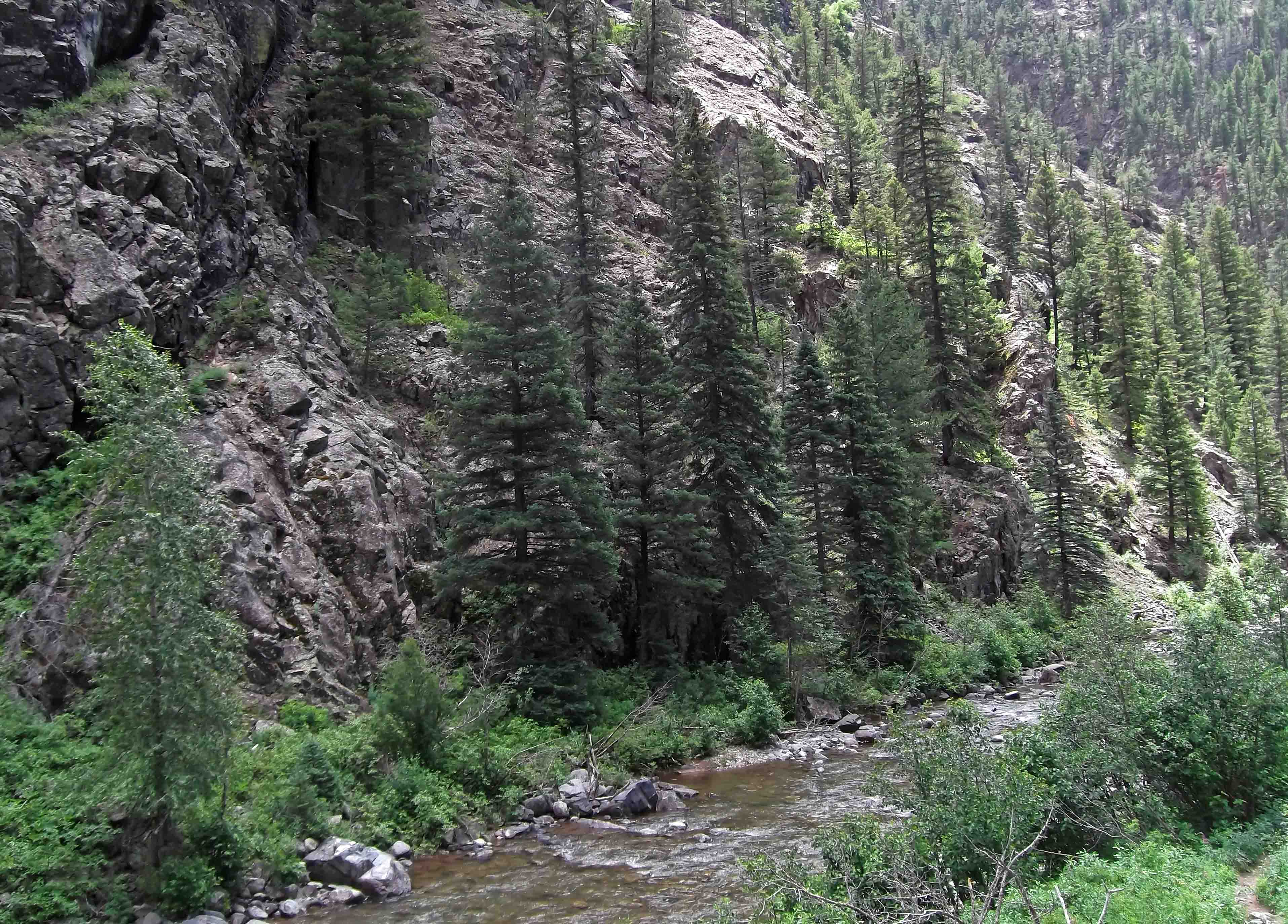 The trail begins near Durango Mountain Ski Resort at around 9000 feet. It quickly descends to the Purgatory Flats area where Lime Creek joins Cascade Creek on its way to the Animas River. After hiking the flats the trail enters a narrow canyon and the trail goes up and down sometimes steeply. The views of the creek and rocky cliffs are amazing. The Summer rains caught up to us just before the final switchback descent to the Animas River. Overall we hiked about 5 miles in 4 hours with many scenic breaks.