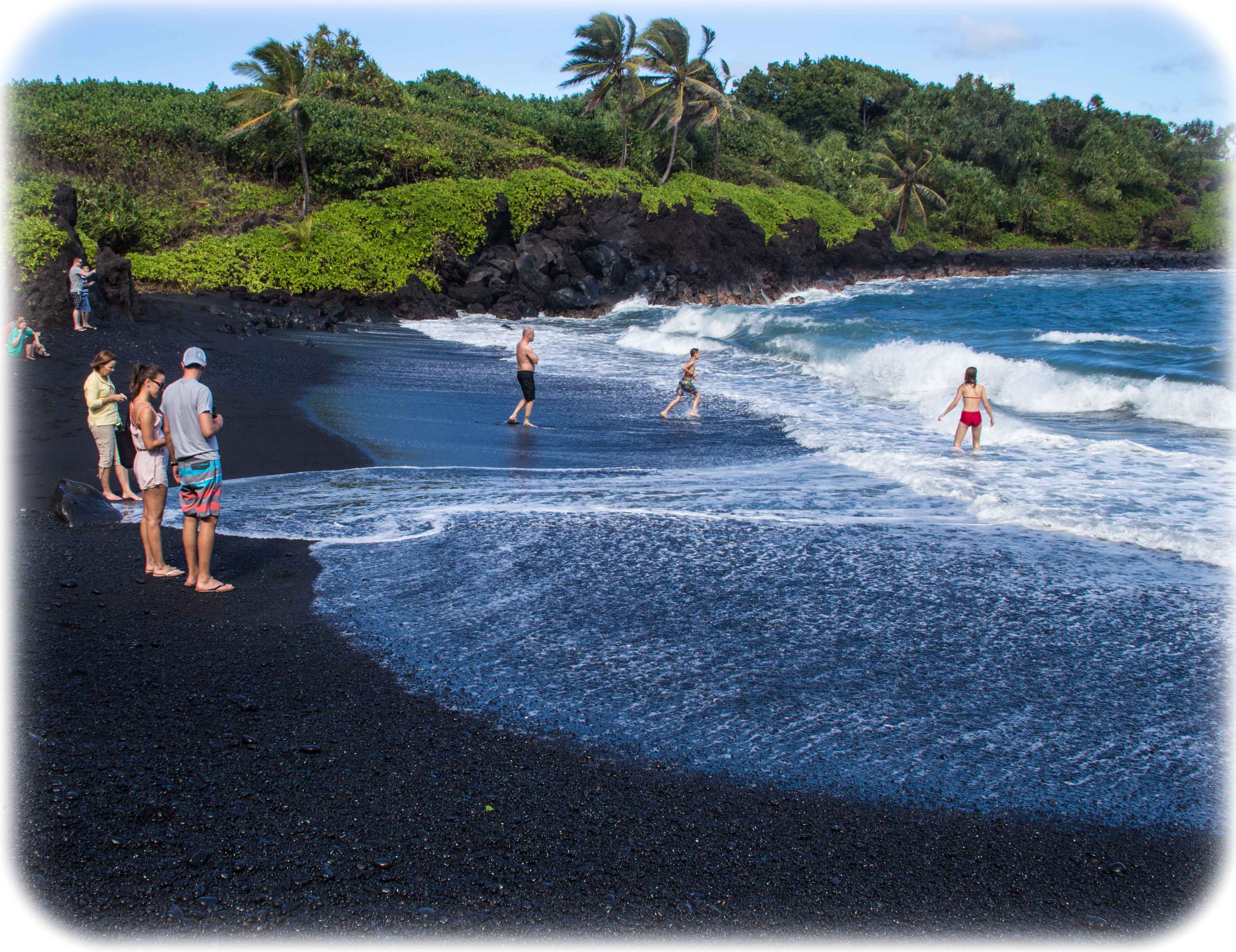 Our first stop on the cruise was Maui.  The view from the ship was impressive – beautiful beaches, green mountains.  We picked up our rental car and took the “Road to Hana”.  This is a famous 52 mile drive with over 620 curves, 46 one lane bridges and jungle all the way.  It takes 3 hours each way and it is not relaxing.  But it is incredible and there are hidden gems along the way.  Looking back we think we’d like to spend a few days in Hana.