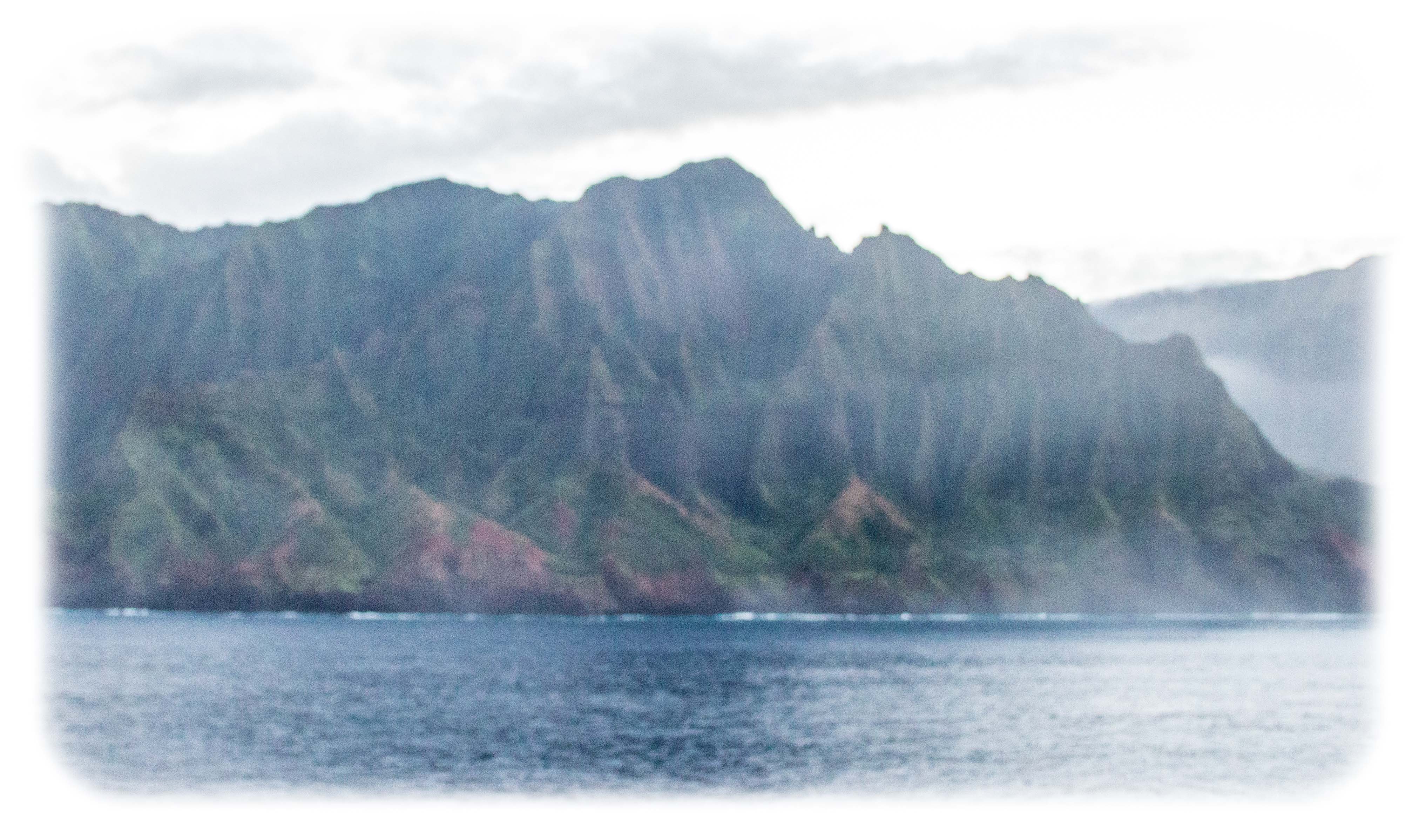 A highlight of the cruise was to be cruising close to the Na Pali Coast as we left Kuaui. Unfortunately some golfers were late getting back on the ship so our cruise along the coast was 30 minutes later than planned. With the shorter days of December we lost most of our light before we reached these incredibly rugged spectacular green cliffs to the sea. As a result the pics suffered.