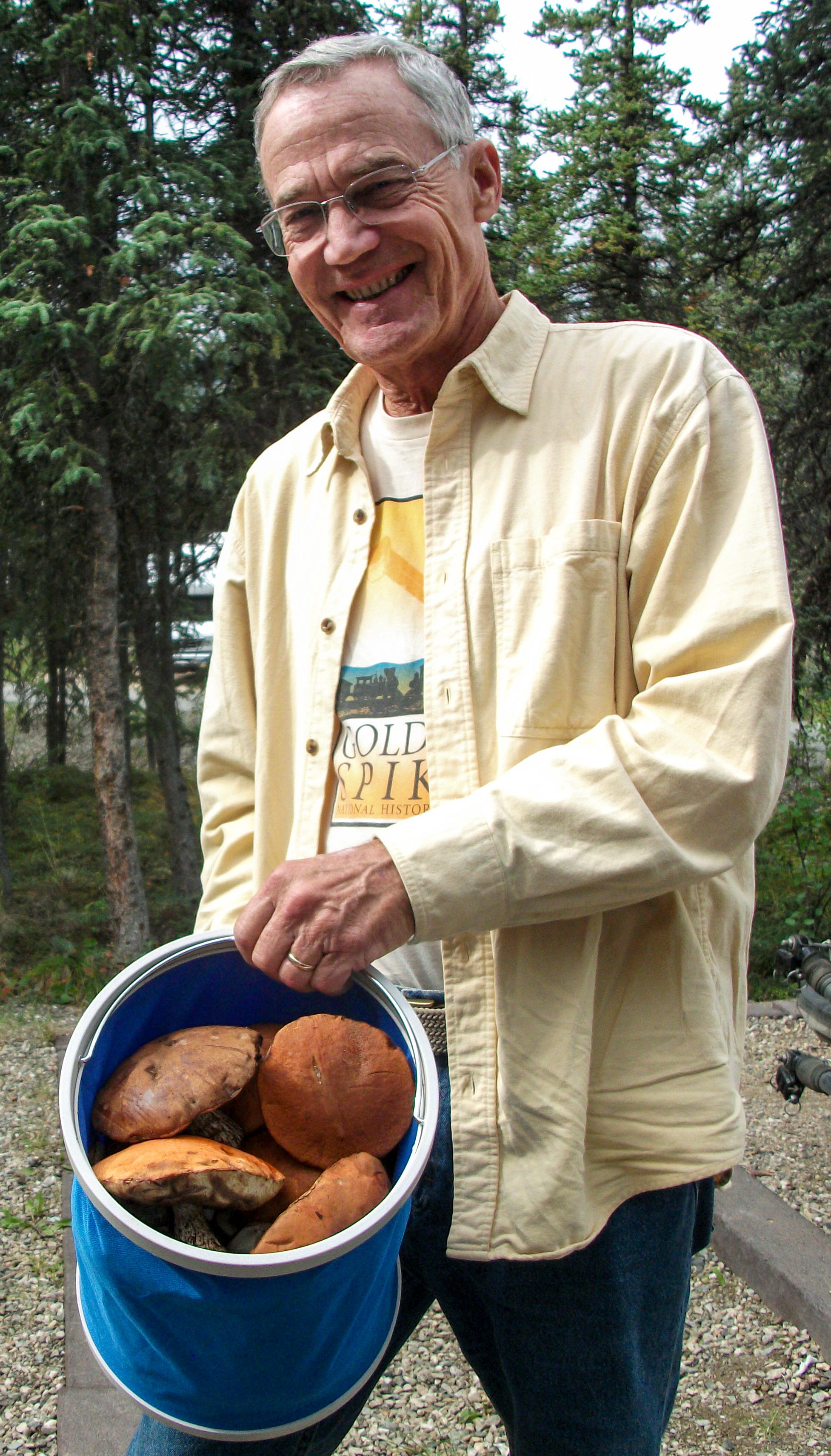 We have learned something of the art of wild mushroom collecting from Chris Ricci http://www.majestymushrooms.com/ in Colorado. In Florida, we have learned to Eat The Weeds with Green Deane http://www.eattheweeds.com/ . In Alaska we learned from the National Park Service rangers that there are no poisonous berries in Alaska and that blueberries (huckleberries) and cranberries are widely collected by visitors and families. Alaskan bears consume around 200,000 berries per day as they fatten up for winter. Red squirrels collect mushrooms which they stash in trees above the ground to dry for later use. Really! We also learned of more mushroom hunting in Alaska and British Columbia. In BC, foragers make a decent living selling Pine or Matsutake mushrooms to brokers who export to Japan. Once you’ve tasted and smelled the pine, it becomes a most sought species.
