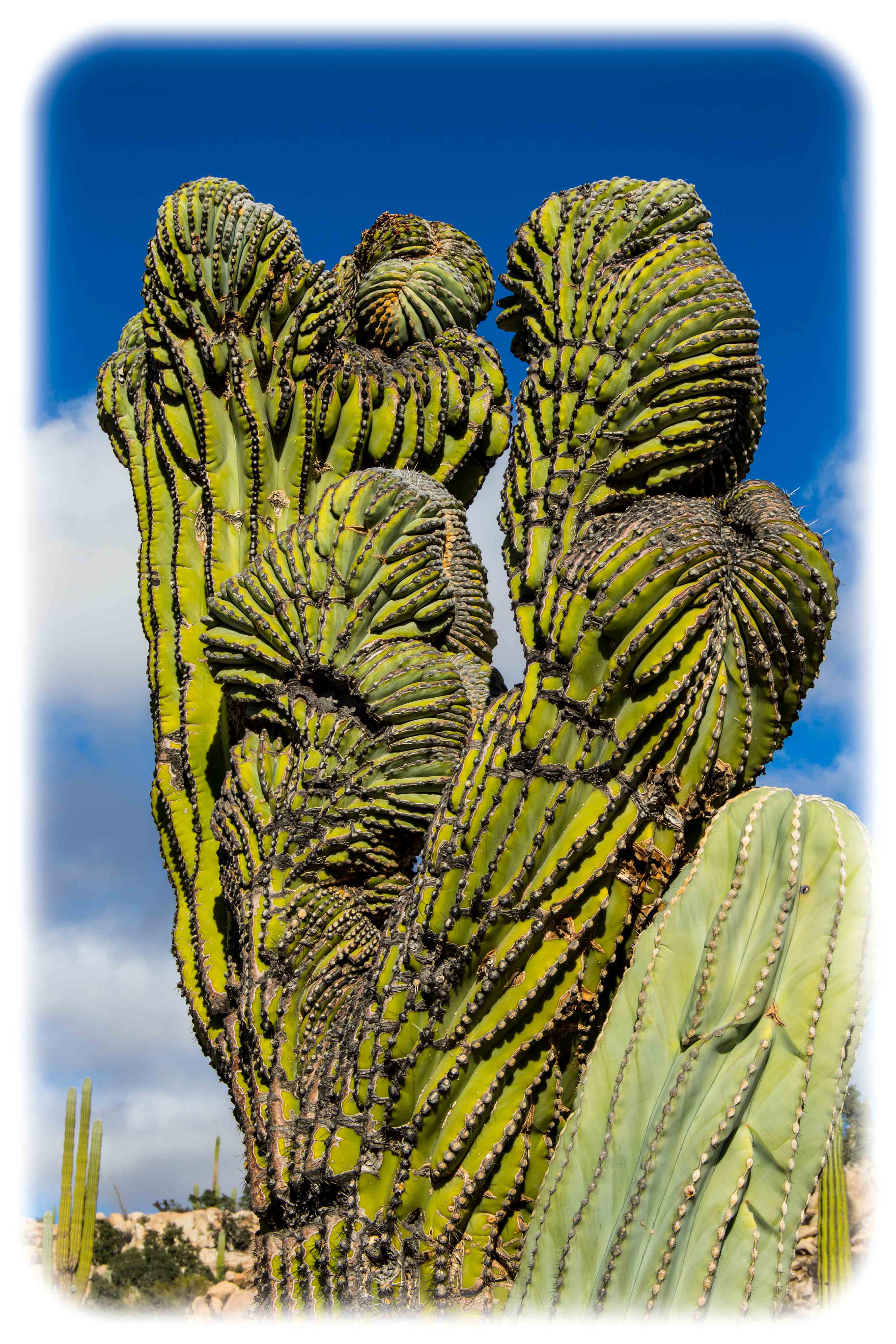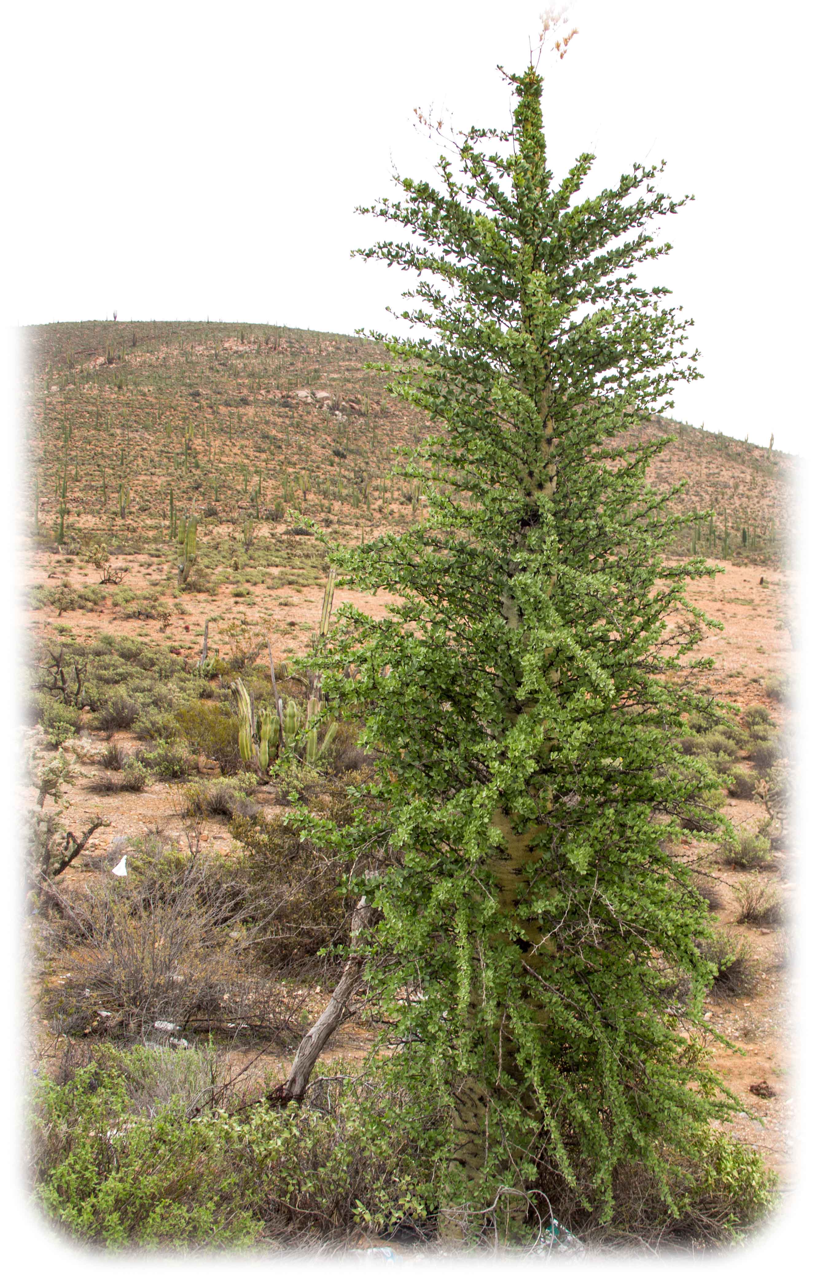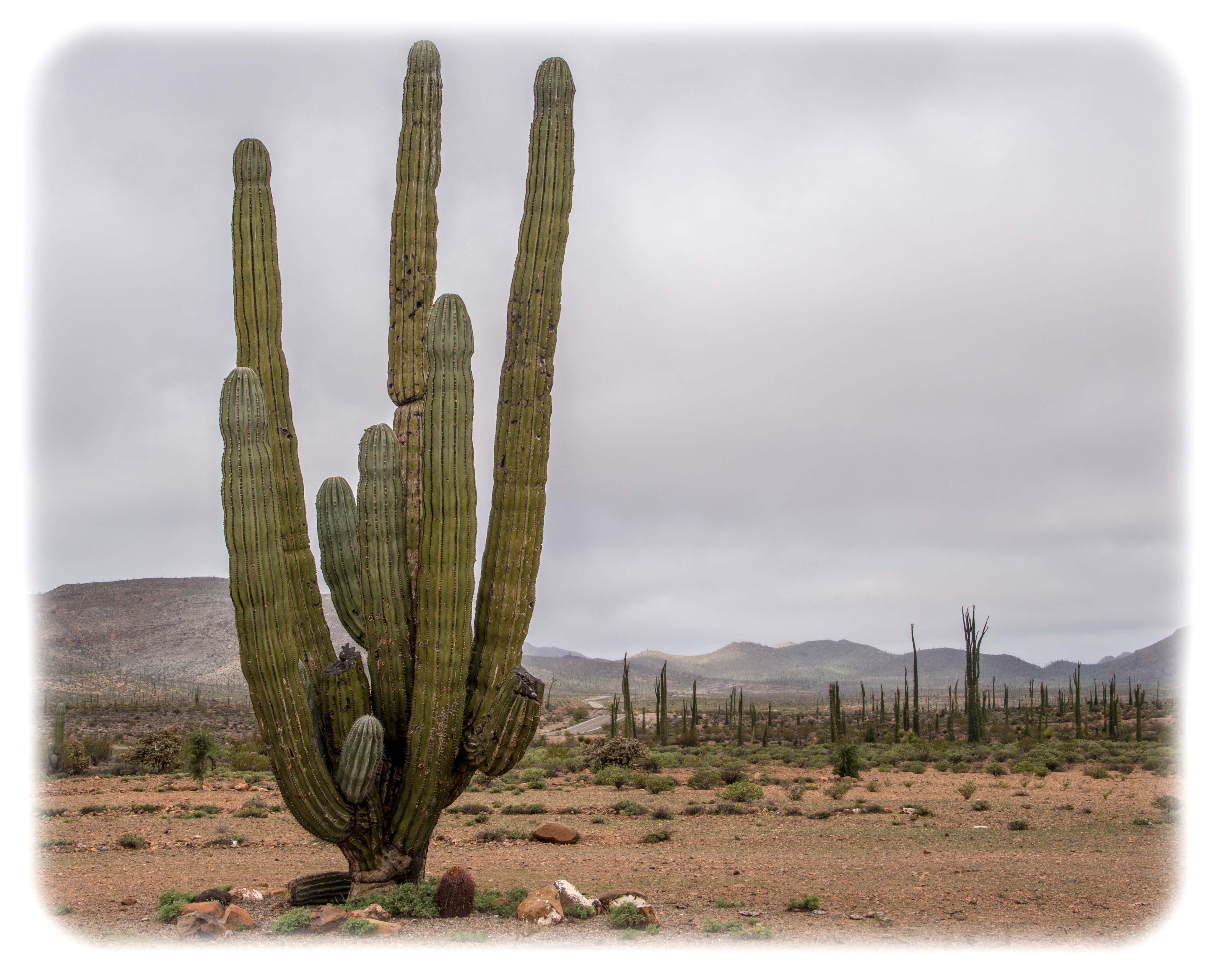 The landscape in this area is truly a fantastic mix of extreme cactus and thorny desert trees along with exotic shaped granite bouders.  The featured plants include the Boojum Tree and the Cardon Cactus, both very unique to Baja.