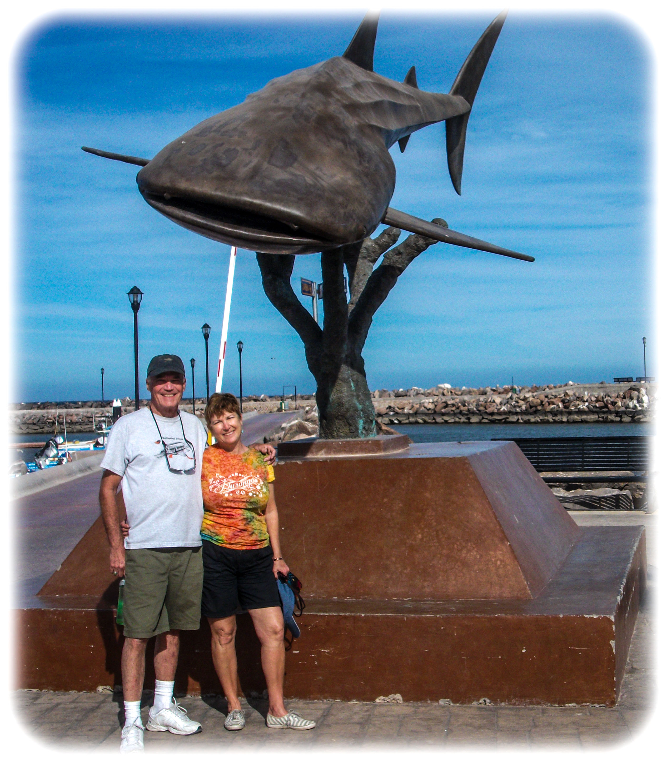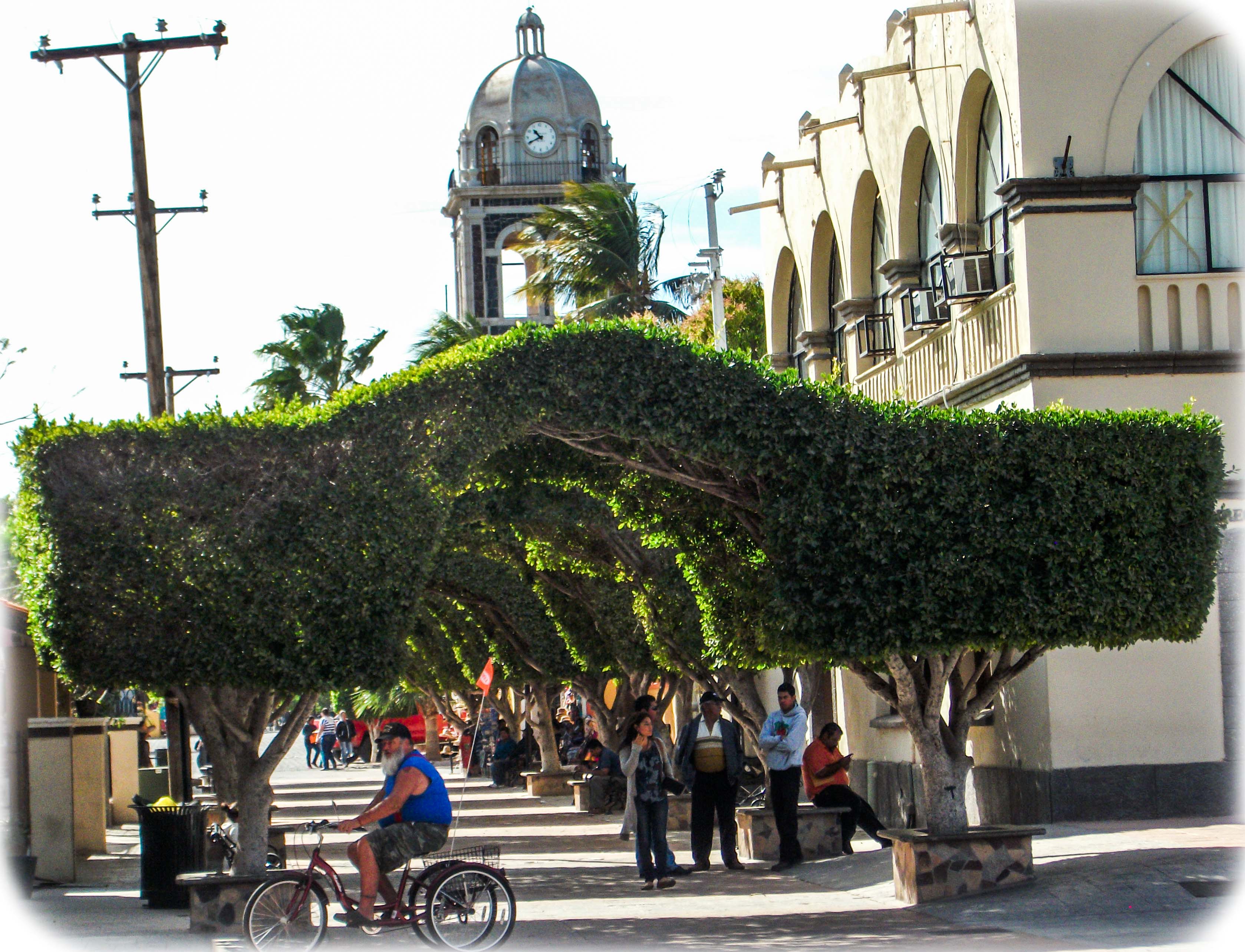 Traveling south from Playa Santispac we enter the oldest city in all of California, Loreto. It was the capital of all Californias, including what became a US state, for 130 years. The mission was built in 1697. Loreto is a nice, clean small city on the Sea of Cortez. We stayed in an RV park walking distance from the historic center with its beautiful hotel and arched tree shopping areas. I think we all felt very comfortable. And now we are in the tropics. Mango trees and warm nights. There is a Super Ley supermarket in Loreto too. A good chance to stock up on groceries. We stayed 2 nights at Riviera Del Mar RV Park. It was tight with our 13 RVs, but we made it work.