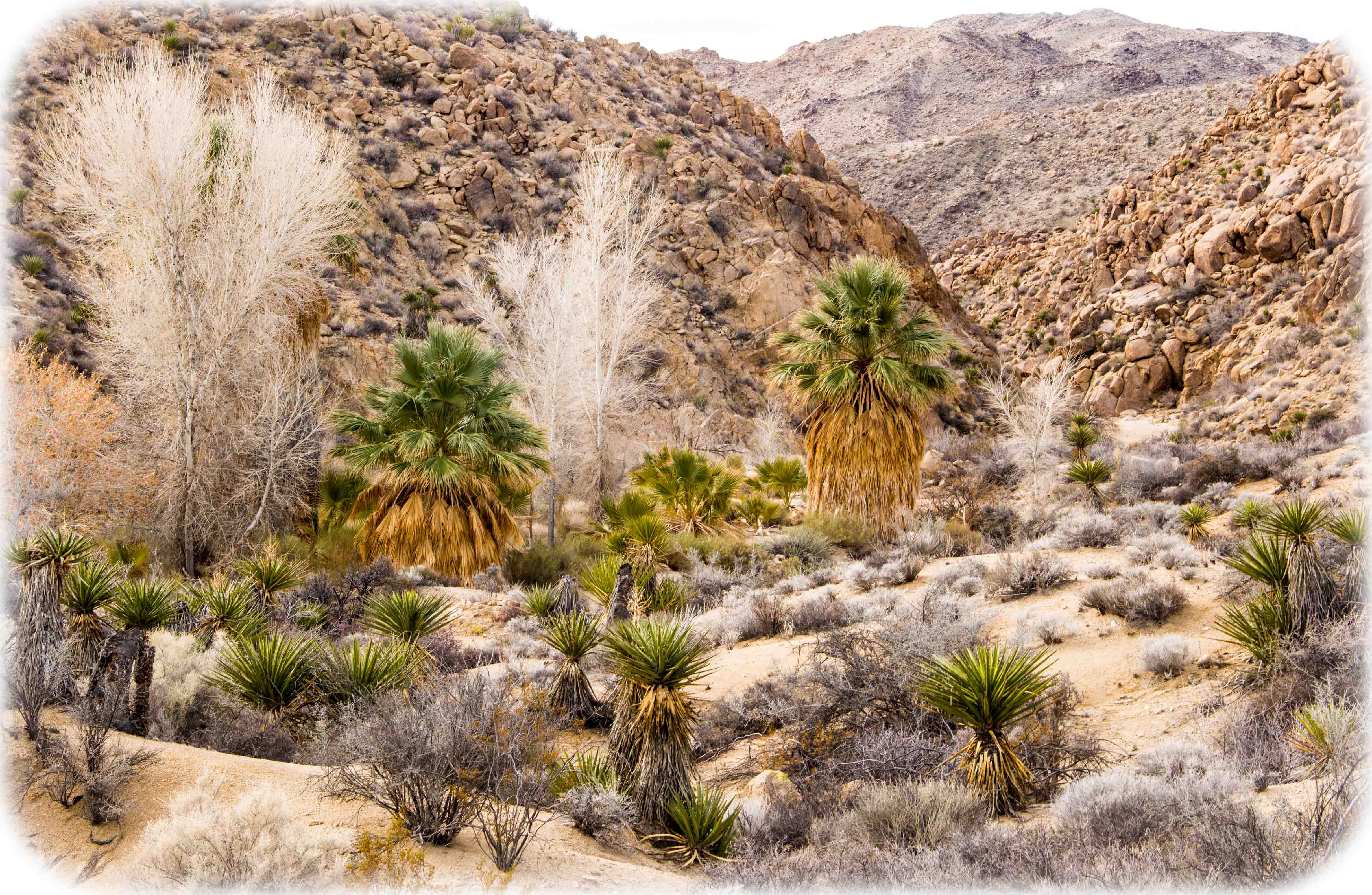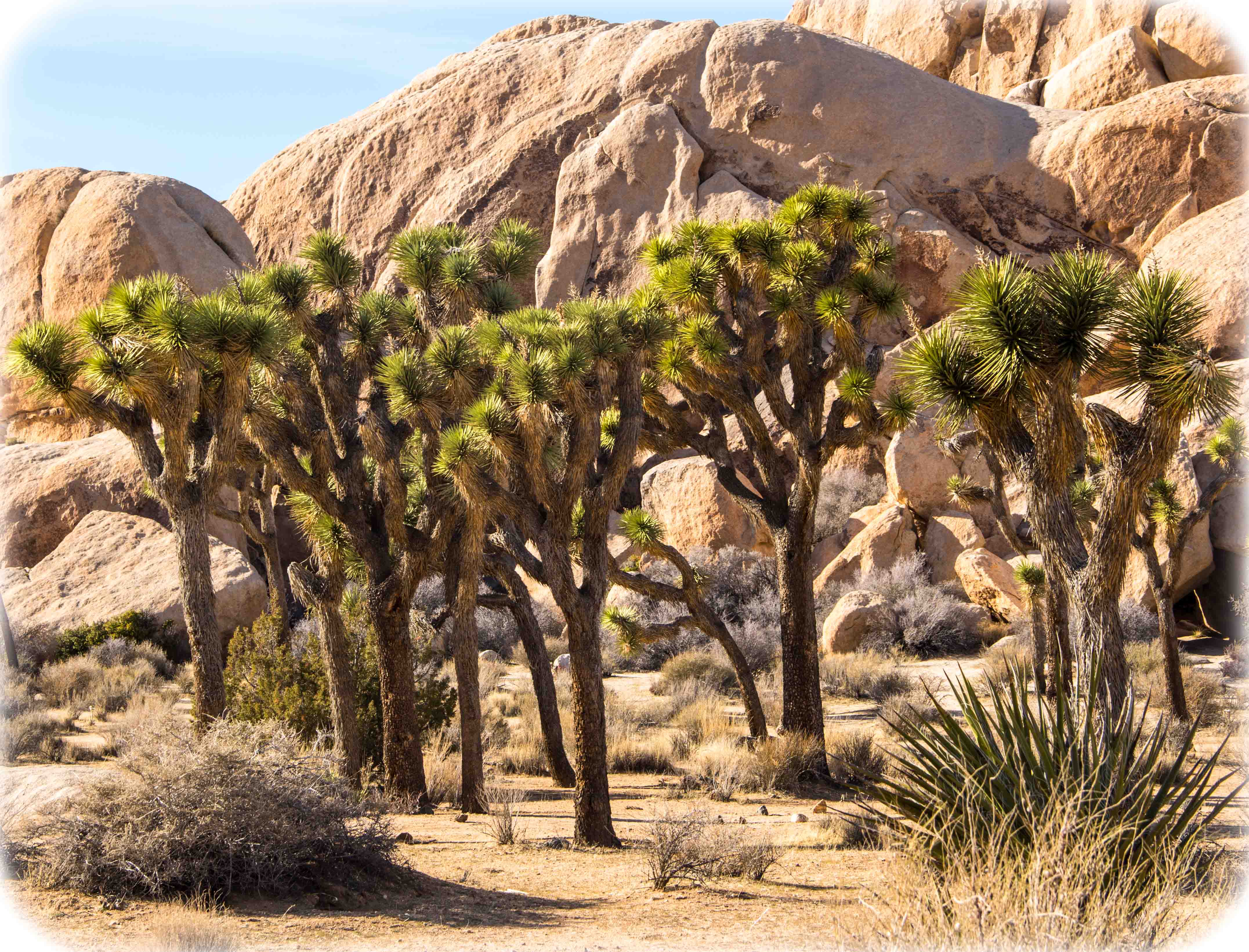 We’d been there before but couldn’t wait to return to Joshua Tree National Park in Southern California. In January we were staying at an RV park near Palm Springs so it was less than an hour drive to the park. The south entrance took us to Cottonwood Springs, a California Fan Palm oasis in the mountainous desert. Joshua Tree is a huge preserve in the mountains at the juncture of the Colorado Desert and the Mohave Desert. It was established to protect plants, especially the Joshua Tree, which were being dug up to landscape Los Angeles. It is a rugged landscape of Monzogranite boulders and formations eroded by wind and water. The Joshua Trees stand out in this stark landscape like Dr. Suess characters.