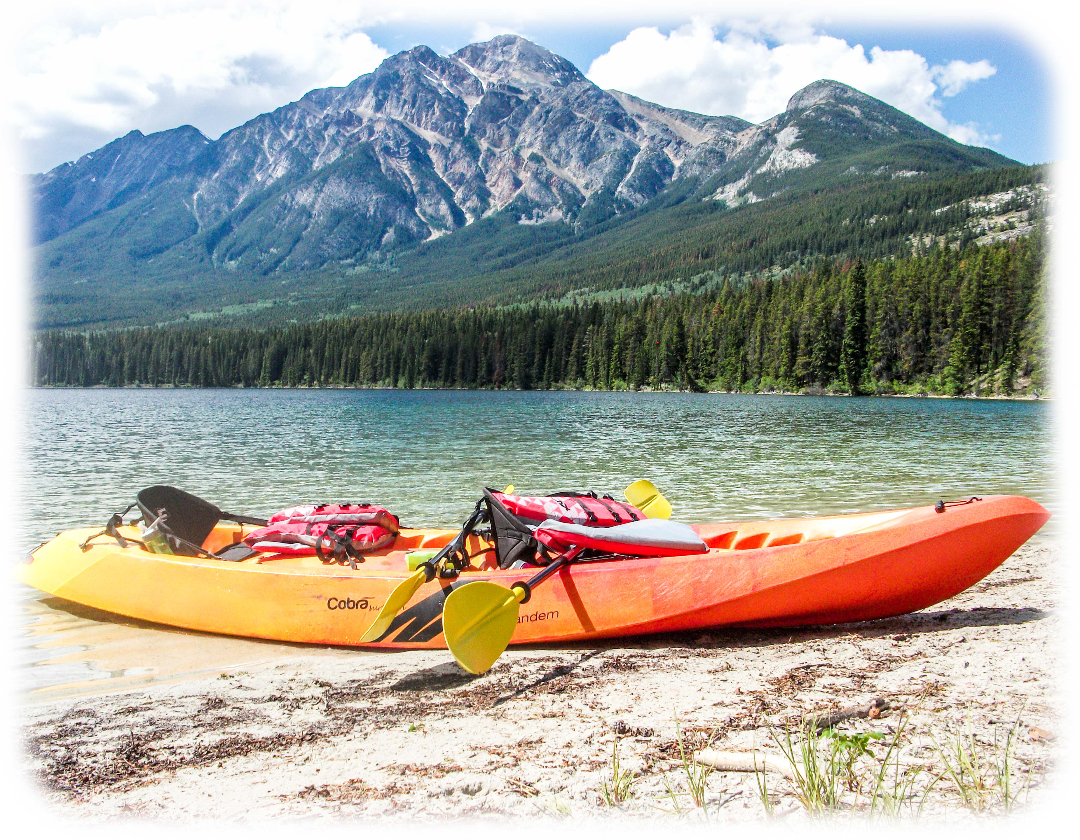 Throughout our Canadian Rockies adventure we scouted places to launch our kayak. We found some nice spots near Banff but the weather just didn’t cooperate. Around Jasper we found many great spots and finally got to launch at Pyramid Lake. Gorgeous views and wilderness surrounded us on our 2 hour tour. No motors on the lake makes for peacefull easy kayaking.