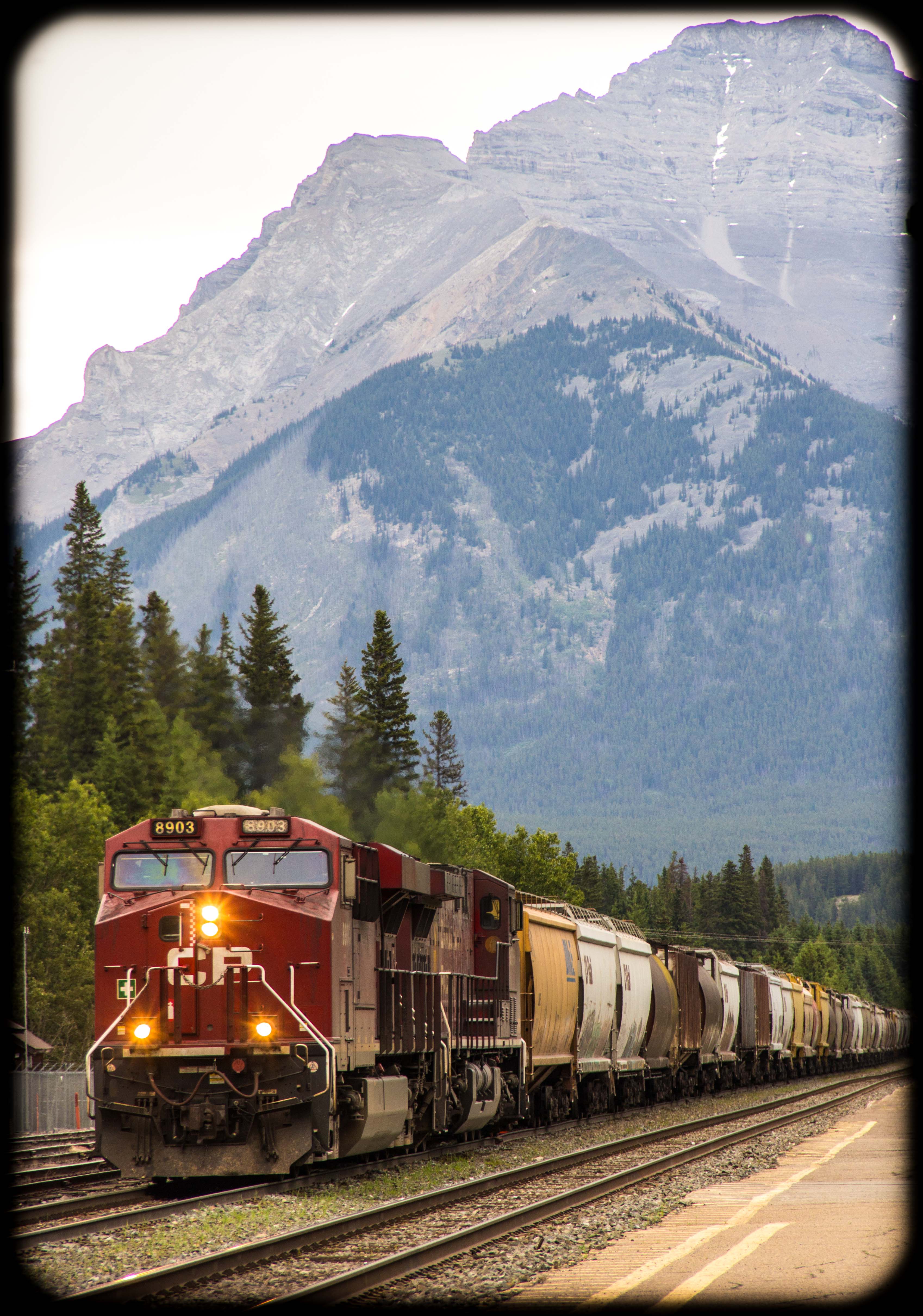 Great post… and some of the best pics yet. That first one – CP westbound at Banff – might be the best shot of your whole blog. Great perspective and looks like it could have been the model for the opening poster. Awesome!