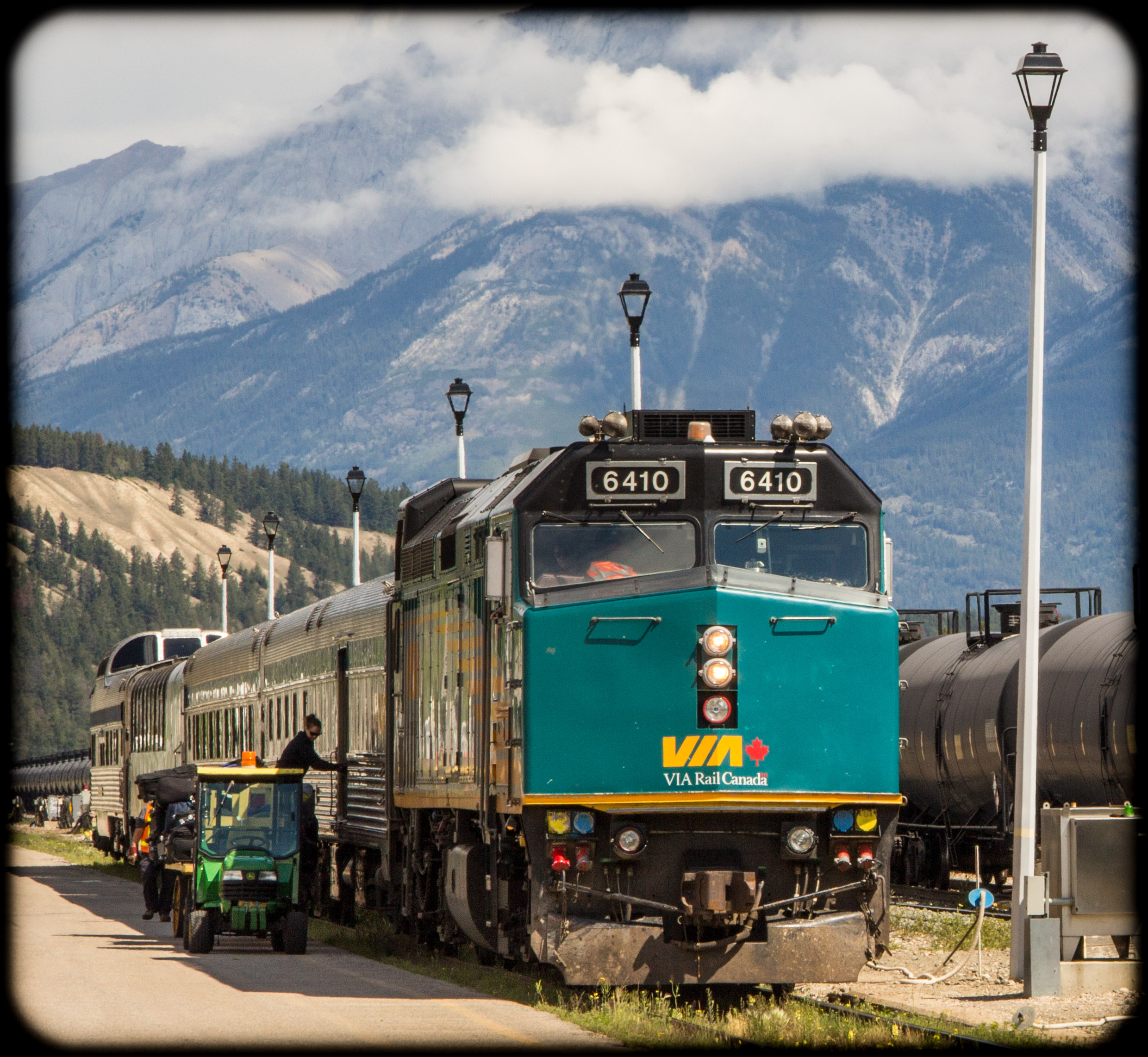 Jasper is served by the Canadian National Railway.  Trains run from Edmonton AB to Prince Rupert BC.  We tried to ride a special tourist train through the Rockies but they were sold out everyday we were there.  When we saw the train we weren’t surprised since they only had 2 or 3 passenger cars.  The Via Rail CN passenger train “The Canadian” had 16 or more cars and was well supported.