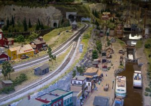 After arriving at Patrick and Lynn’s home in Youngstown NY on the Niagara River, we toured the Erie Canal town of Medina. In addition to the canal we visited the Medina Model Railroad Museum housed in the 1905 freight depot of the York Central Railroad. It is a huge 204 ft by 14 ft HO scale layout depicting many scenes of the area. Well done! The museum also owns several pieces of rolling stock and historic locomotives. They offer excursions much of the year.