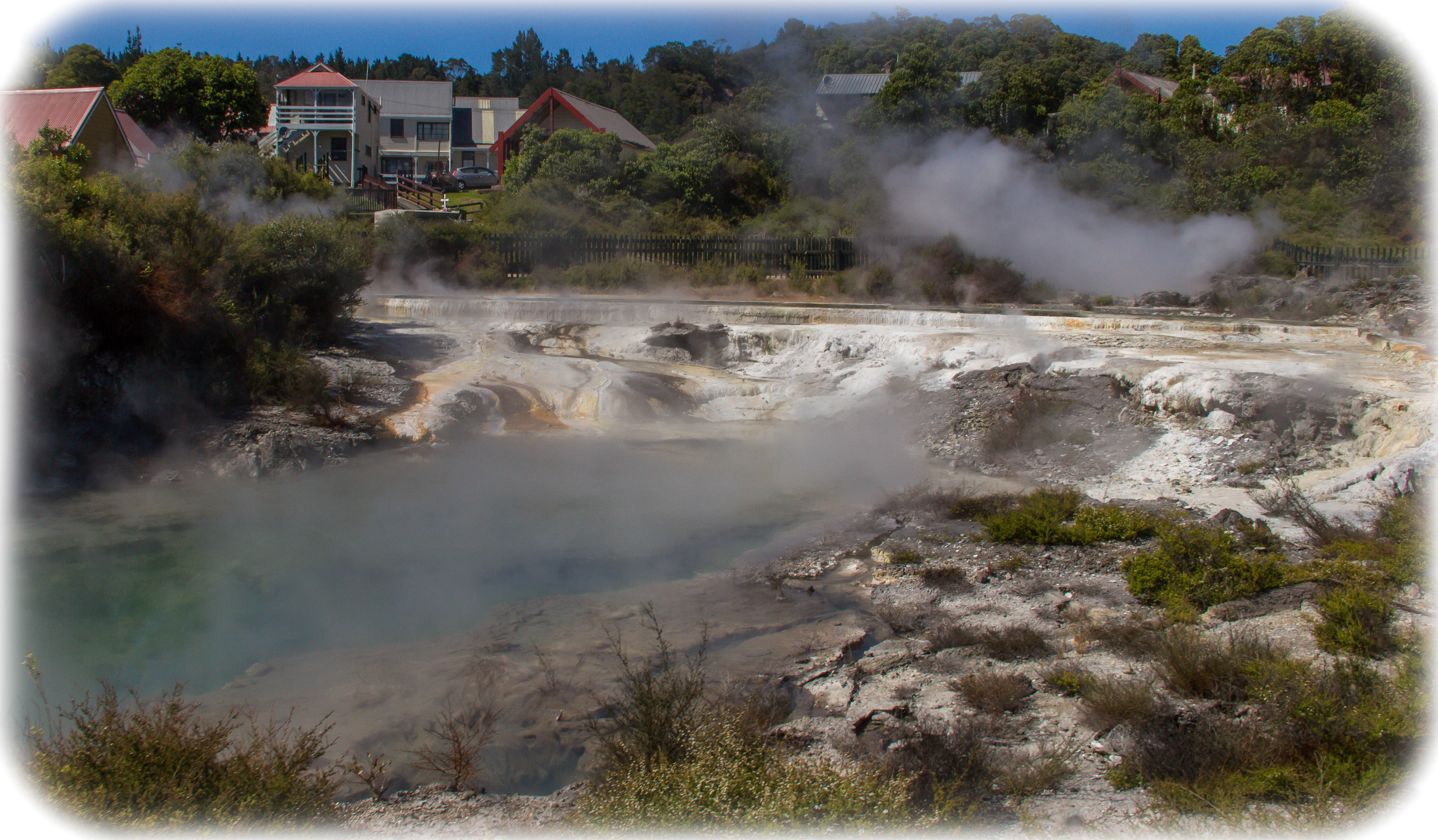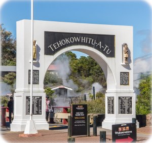 Tauranga is a holiday area for New Zealanders. It is located in the Bay of Plenty region near Mount Maunganui towards the north (warmer)end of the North Island. This is an area of active seismic and hot springs activity. We toured the Whakarewarewa Living Maori Village built on hot springs and mud pools that reminded us of Yellowstone. We learned how they cook and bathe using the hot springs on a daily basis. The Moari are the oldest inhabitants of New Zealand, migrating from Polynesia. We then drove around Lake Rotorua and visited the Polynesian Spa, a world famous hot springs. There we soaked in 7 different pools of varying temperatures with great views. We also visited a Kiwi farm and tasted the Gold Kiwi which is much sweeter than the familiar green. This was another off ship tour and we enjoyed the small van experience. If we go back to New Zealand, Tauranga would be a focal point of our visit.