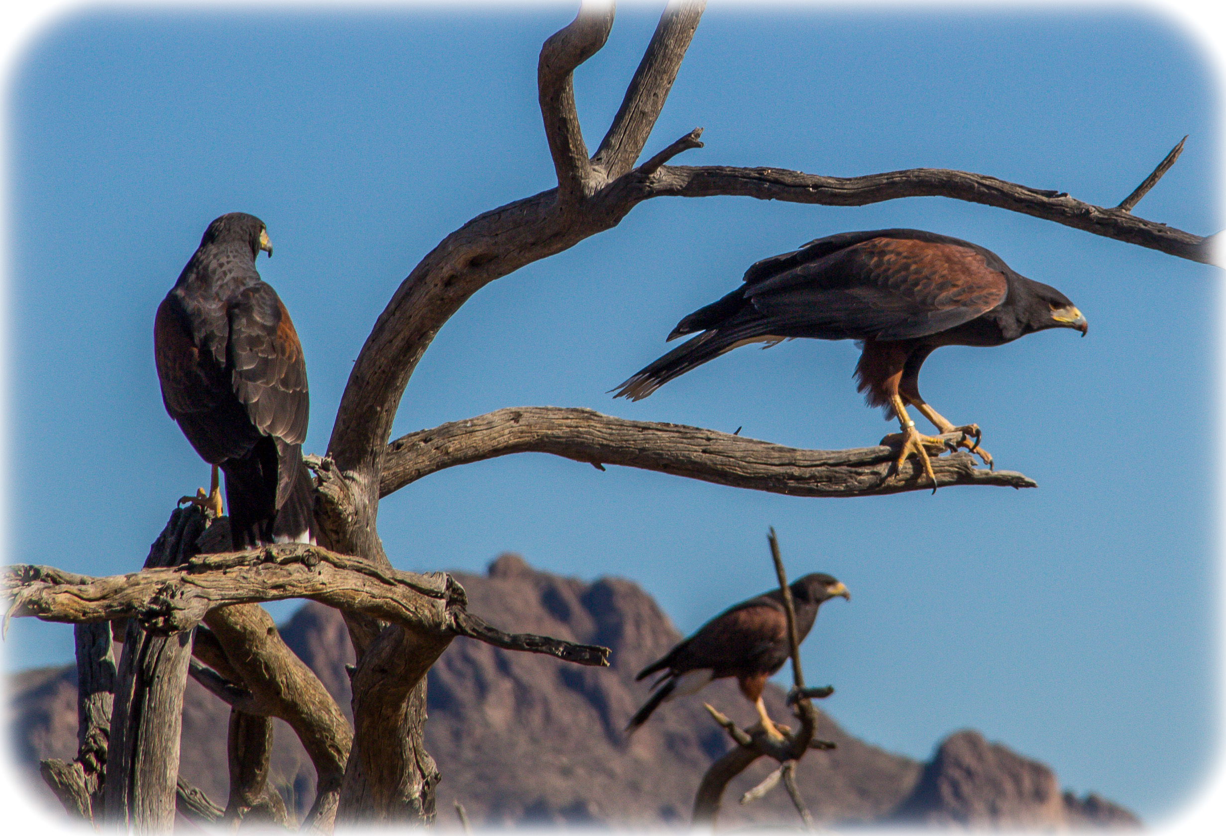 Then we went to Tucson and stayed at the very popular boondocking location known as Snyder Hill.  We had a couple cool days and cooler nights there.  We were surprised to find that we were very close to the Arizona Desert – Sonora Museum.  We have learned to love the desert and this park was part zoo, part botanical garden and very well done.  They had a free flight raptor show where we saw a Peregrine Falcon, Barn Owl, Gray Hawk and 4 Harris Hawks – the only hawks that hunt as a group like wolves.  All the birds were rescued and flew free demonstrating unique behaviors.  We loved it!