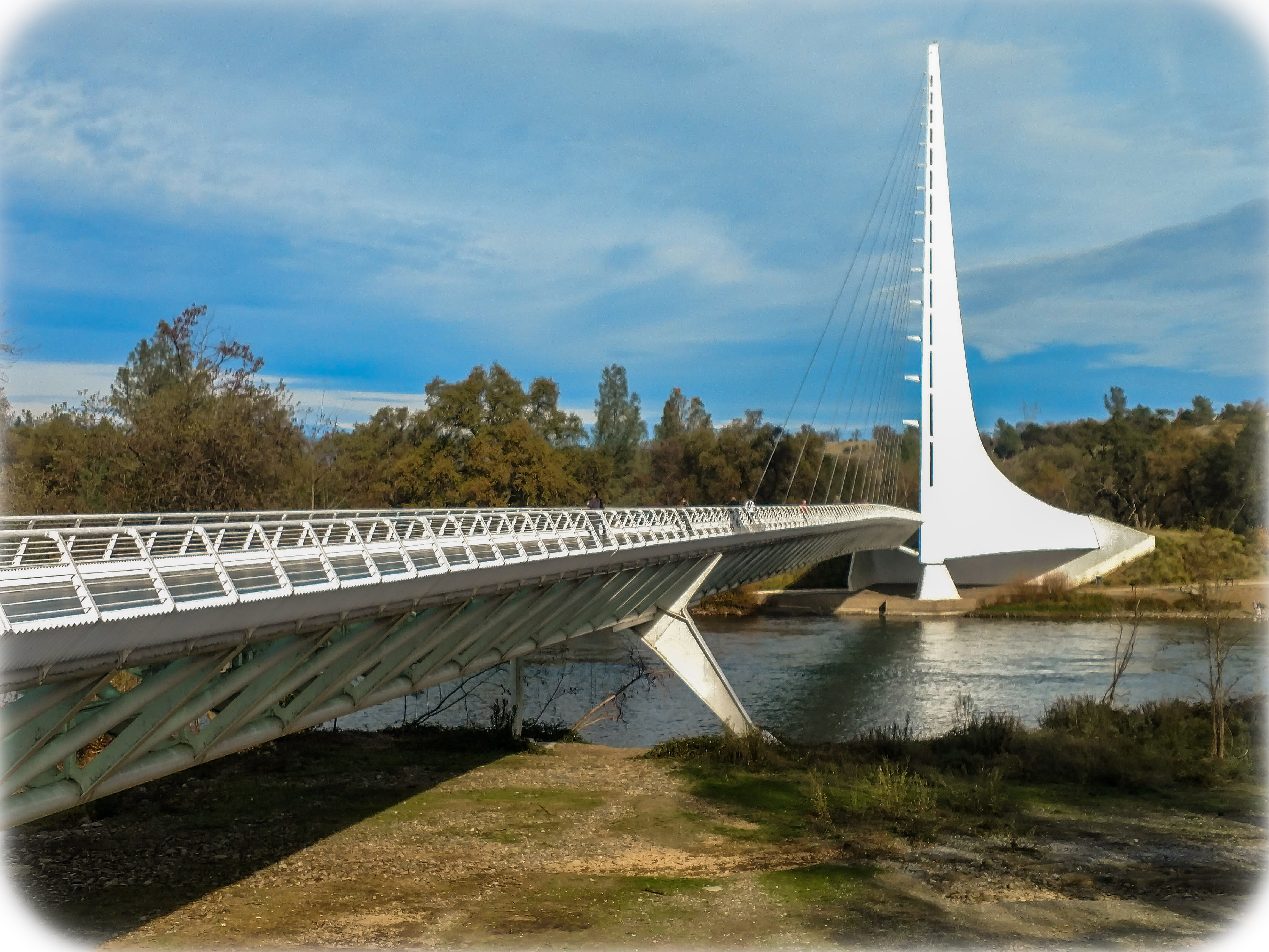 Our travels south took us to California a little later than usual.  Surprisingly the weather was very pleasant in the Redding area.  Redding is a very nice smallish city with a great network of walking trails and an iconic pedestrian bridge over the Sacramento River.