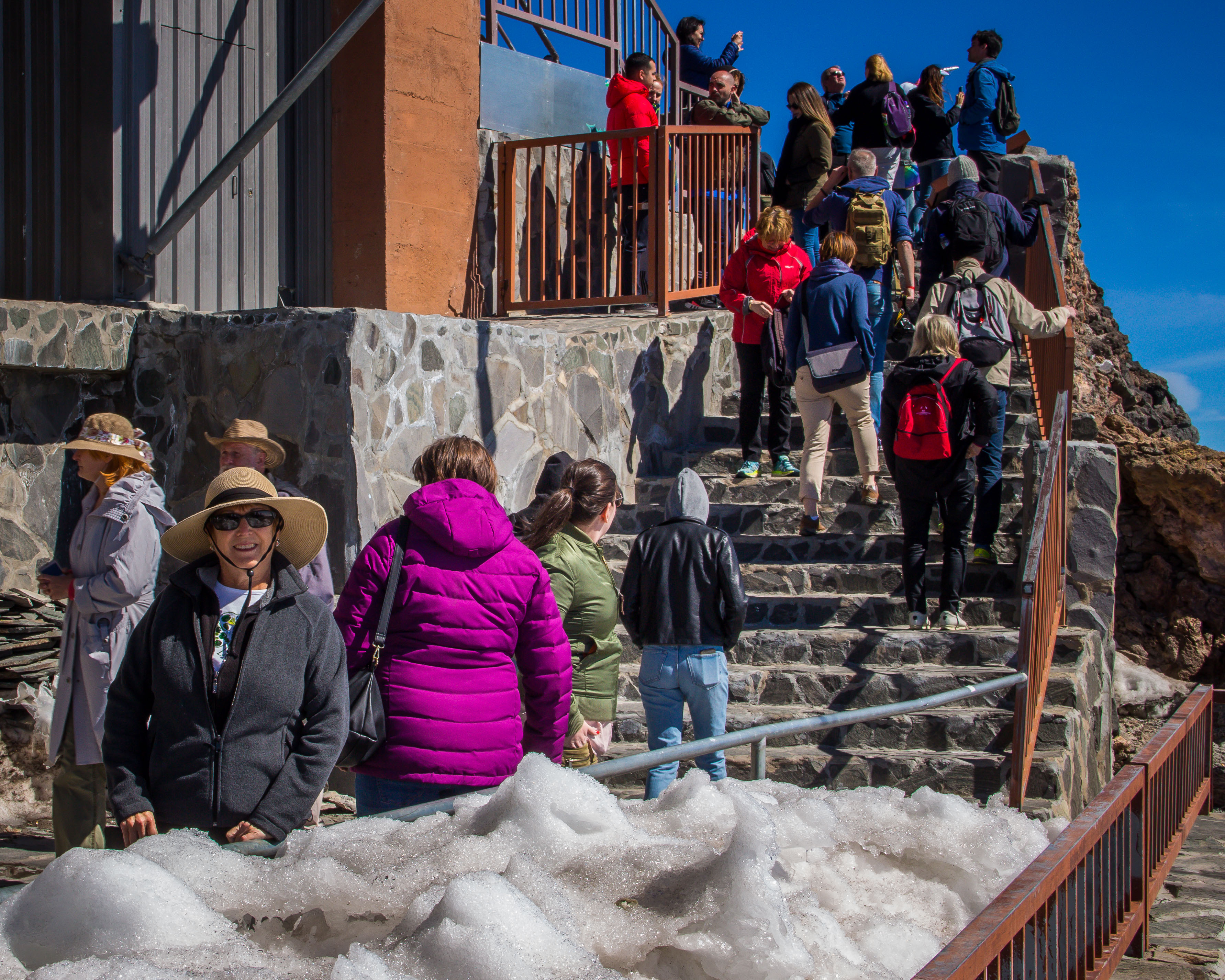 From Antigua we had 7 days at sea crossing the North Atlantic. Our next stop was Tenerife famous for the single deadliest plane crash ever, when 2 packed 747s crashed on the runway killing almost 600 people. We booked a ship’s excursion to Mt. Teide (Tay day) the highest peak in Spain at over 12,000 feet. The Canary Islands are much closer to Morrocco in Africa than Spain but they are a Spanish provence. Teide is a big volcano and we rode the cable car to the top. It was cold. Tenerife has over 300 volcanoes. Our tour included lunch at a fine restaurant but there was no vegan option and unlimited wine made for a bad value for us.