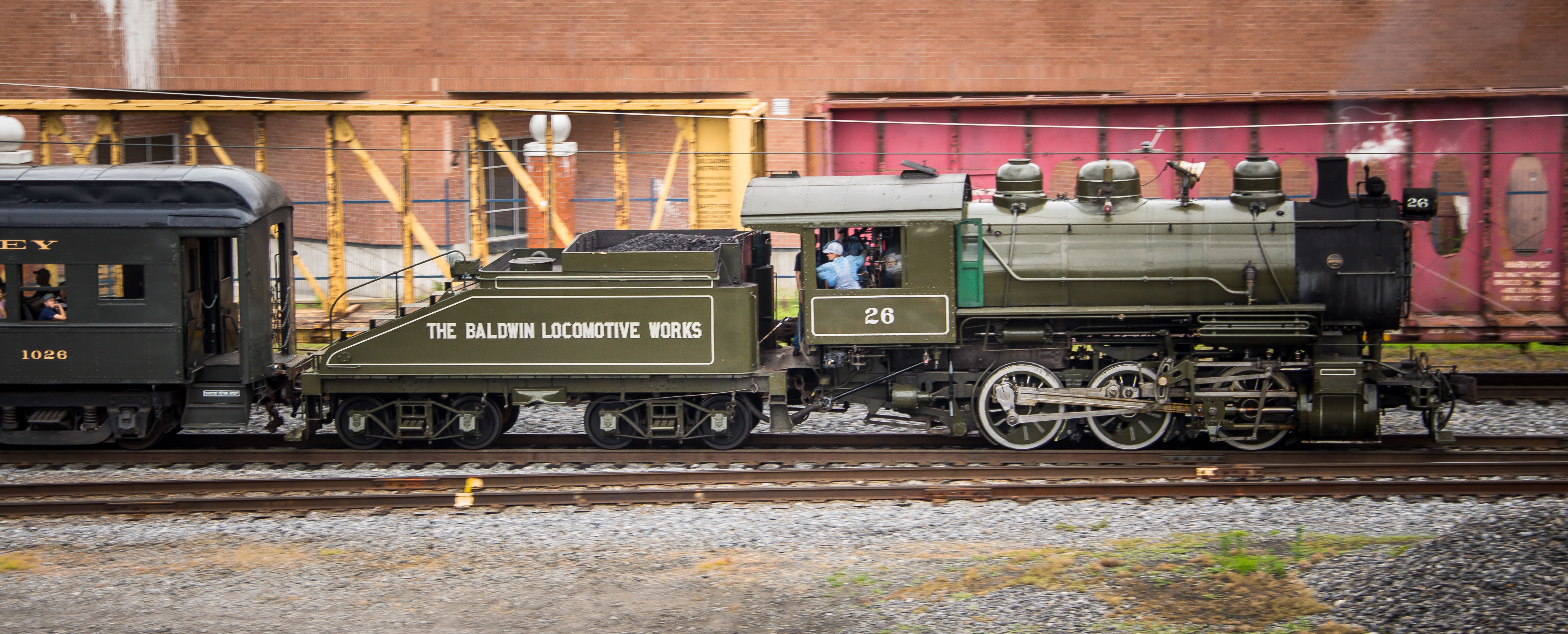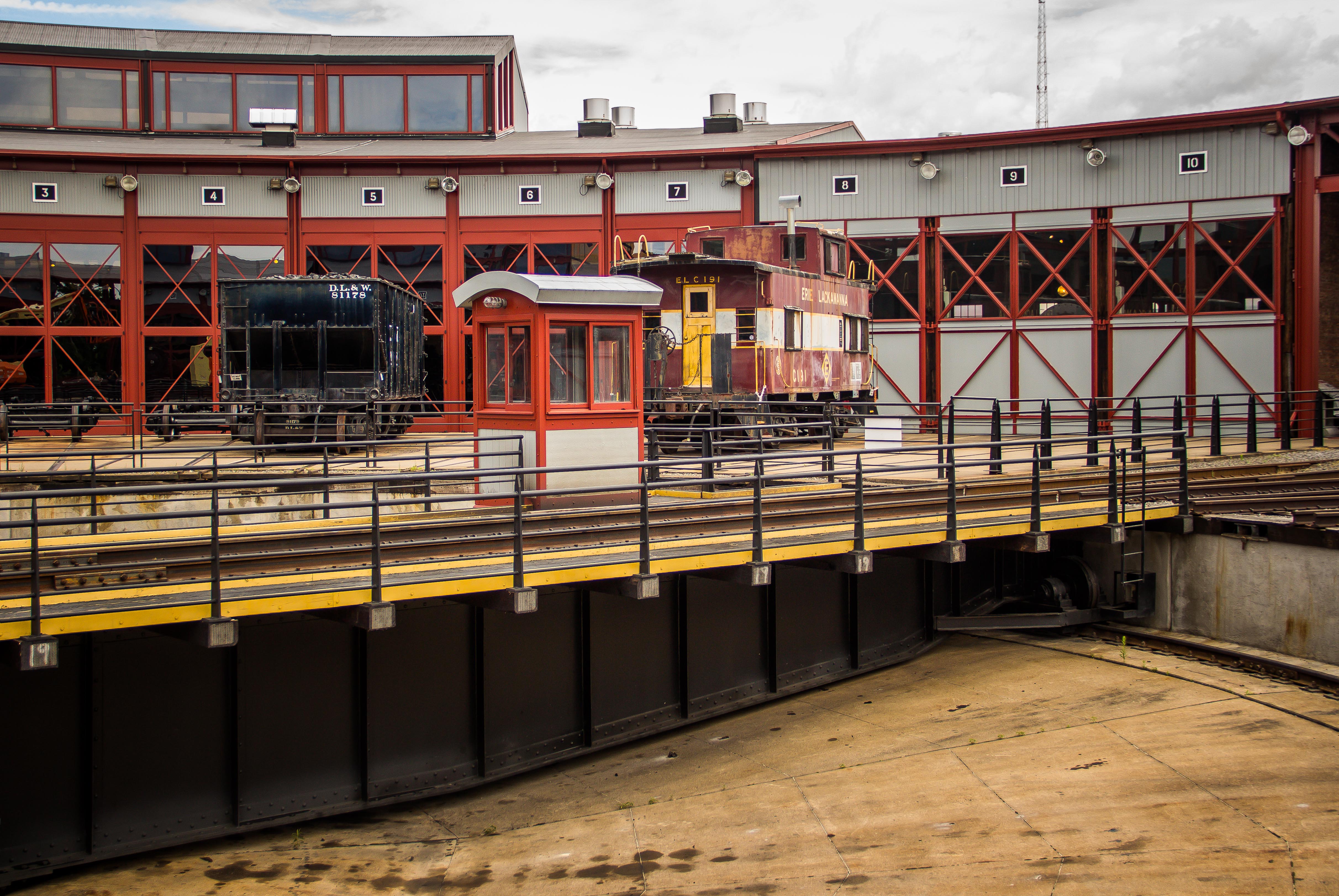 Steamtown is a railroad museum and heritage railroad built on the 62 acre site of the former Scranton Yards of the Delaware Lackawanna and Western Railroad. The museum is built around a working turntable and roundhouse that are largely replications of the original DL&W structures. There are also existing buildings from 1899 and 1902. The museum’s shops fabricate parts for the locomotives and other equipment in the collection. Baldwin 26 is a beautifully restored 0-6-0 steam locomotive in classic Baldwin green that pulls 2 passenger cars for tours of the yards. They also have many other locomotives both steam and diesel.