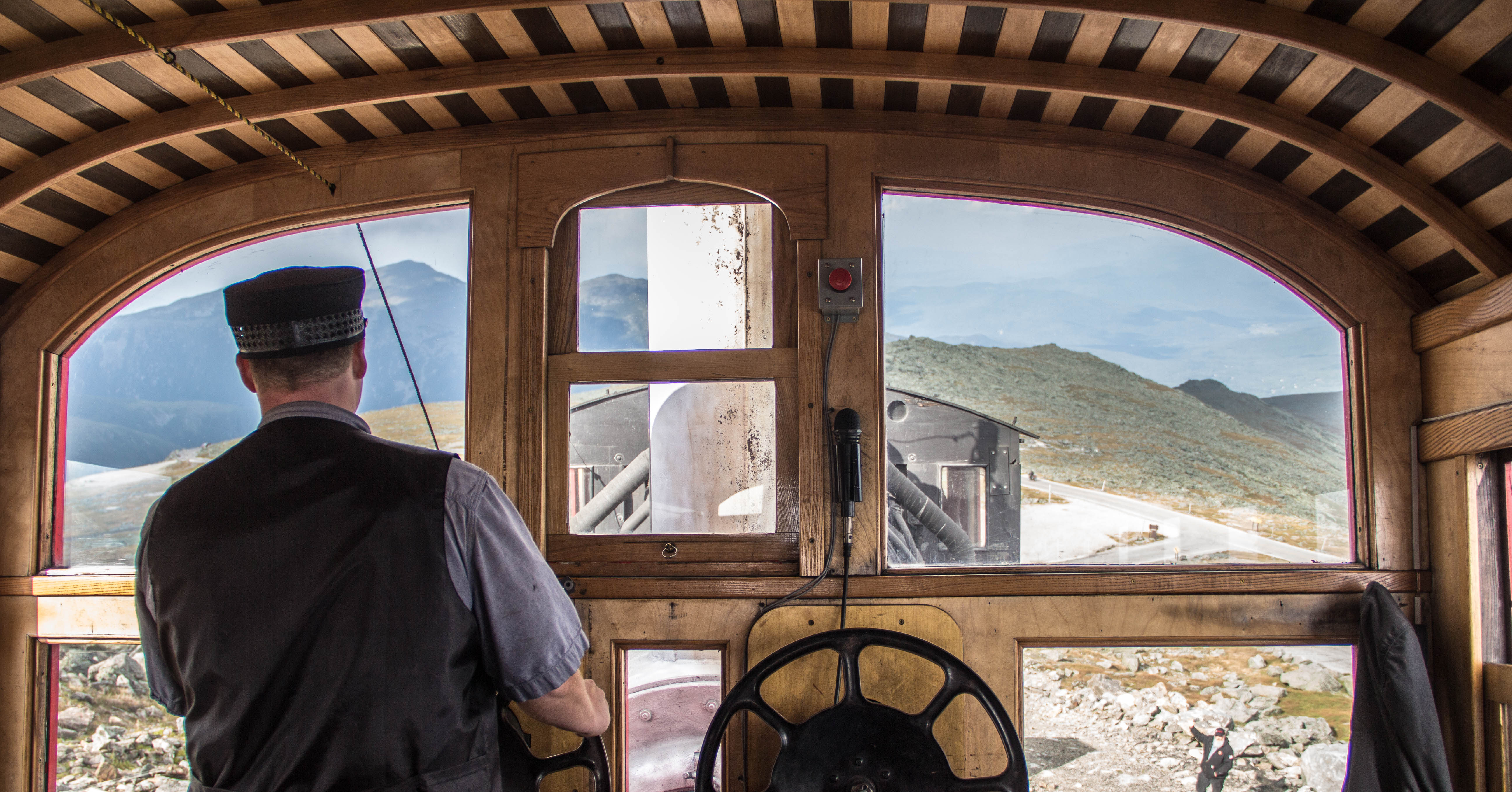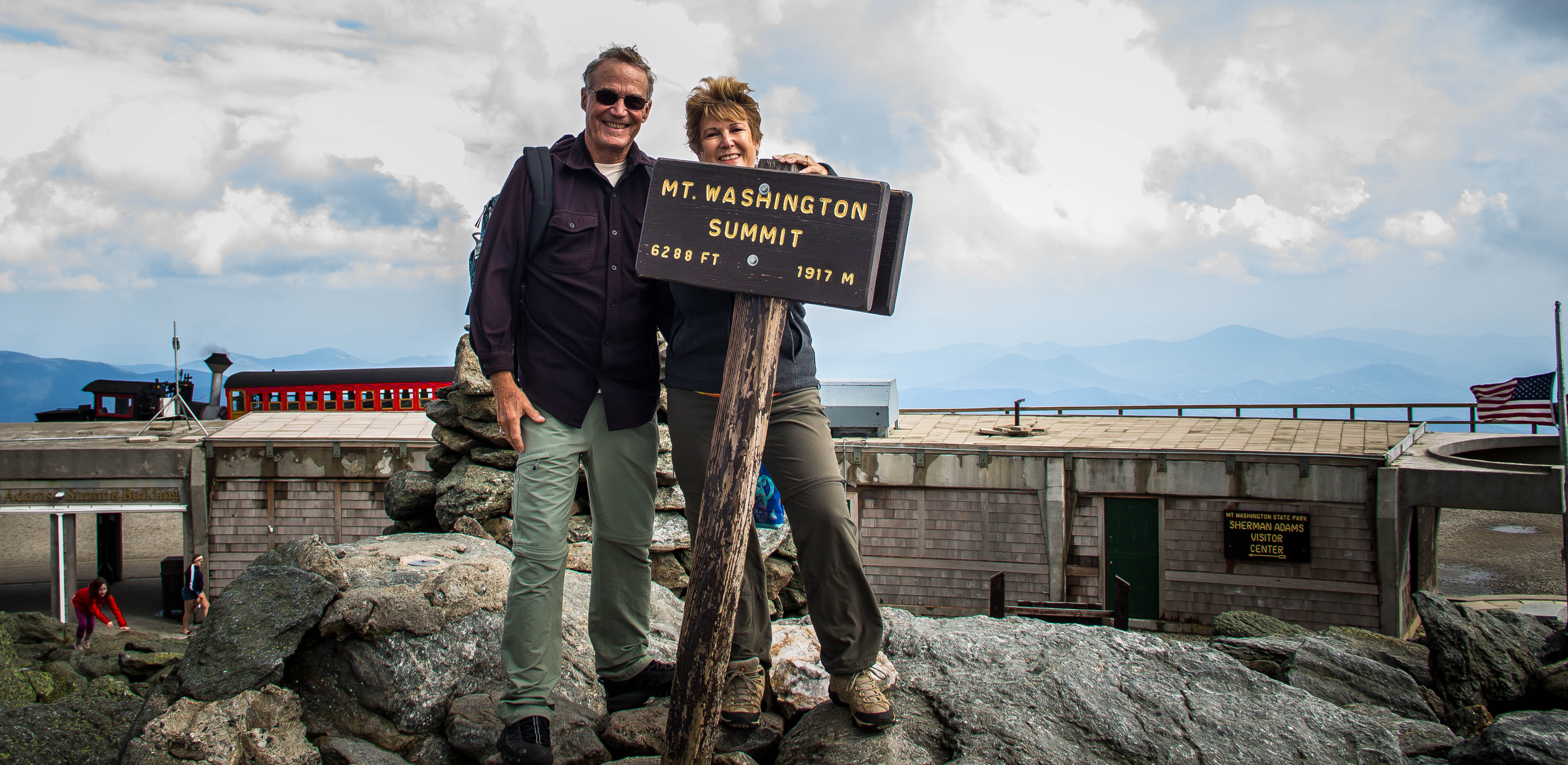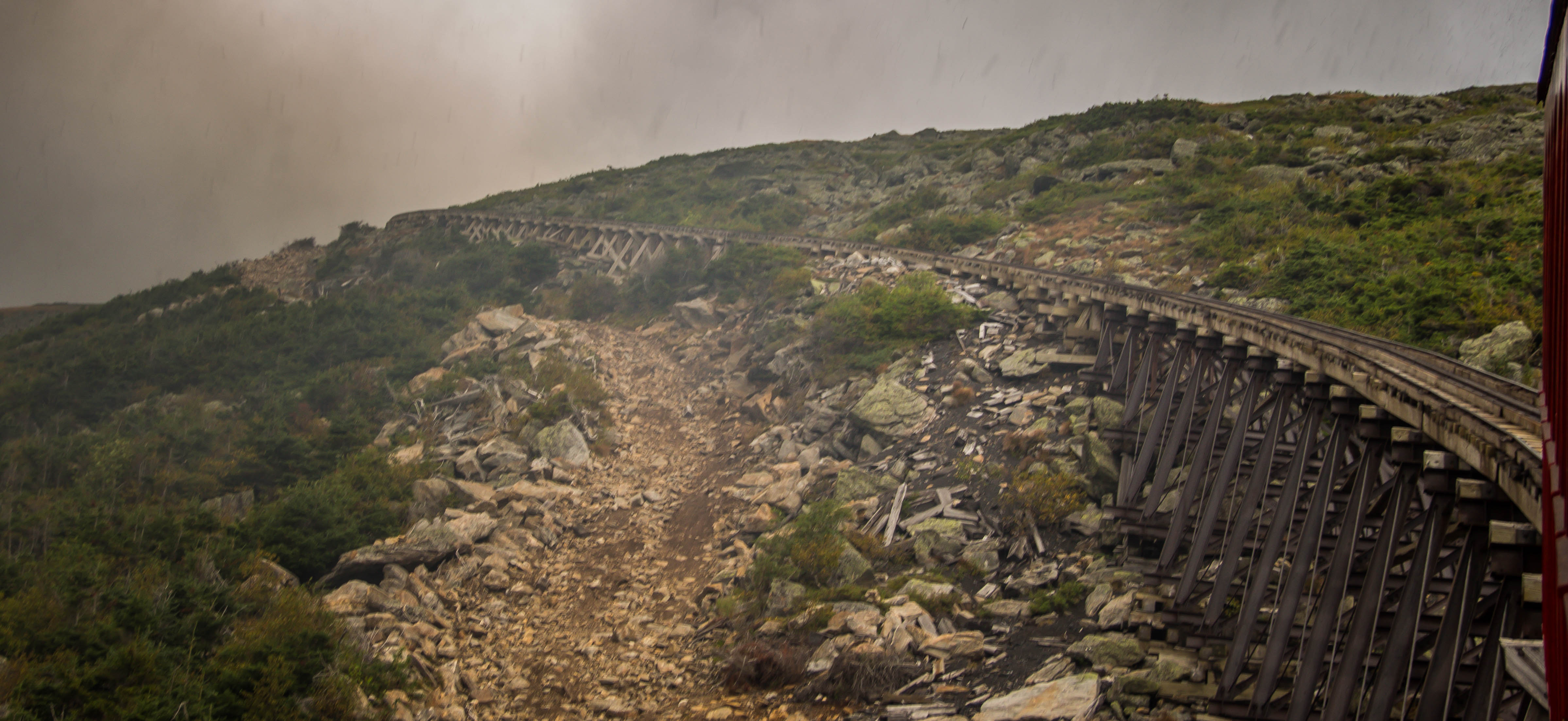 Mt. Washington Cog Railway is famous as the world’s first mountain climbing cog railway. A cog railway is used to climb extreme grades, in this case up to 37%. Mt. Washington is the highest peak east of the Mississippi at 6288 feet. Its also famous for its severe weather. The highest winds ever recorded occured here in 1934, 231 mph! Currently the railway offers steam and biodiesel locomotives. We rode the steam to the treeless top.