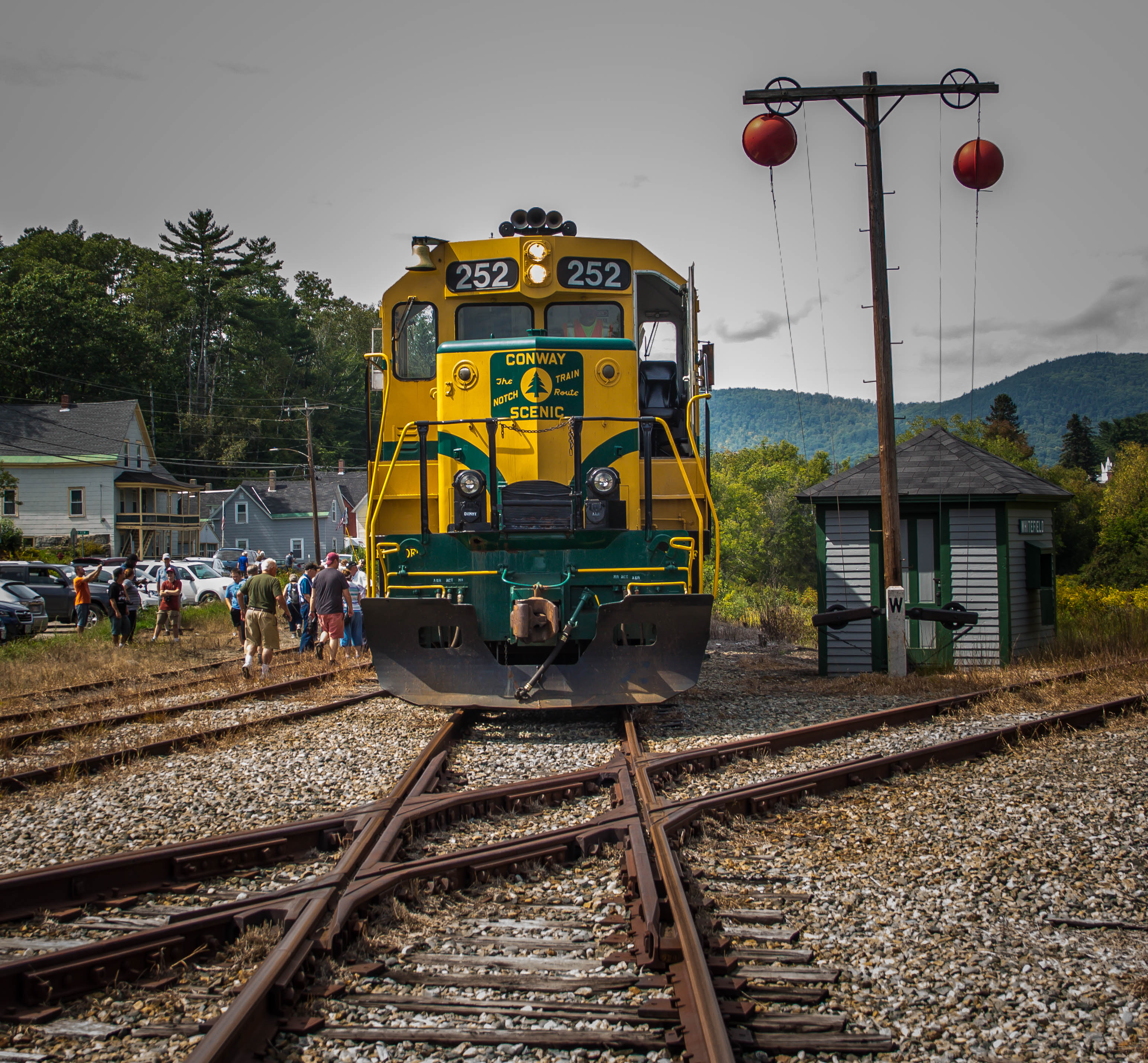 Conway Scenic Railway is another rail attraction in the White Mountain area of New Hampshire. We were lucky to arrive for railfan weekend, a couple days of special exhibits, rides and memorabilia. Our special excursion traveled 3.5 hours through the White Mountains to Whitefield NH and a celebrated diamond (a crossing of 2 lines creates a diamond symbol in the track).
