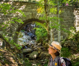 The carriage roads and bridges are a unique aspect of Acadia NP. The 57 miles of roads were built by John D. Rockefeller Jr between 1913 and 1940 to preserve automobile free areas of Mt. Desert Island. Rockefeller not only financed the construction but took an active role in the design of the roads. He had a landscape architects eye for making the roads complement and enhance the natural landscape. The bridges were each individually designed for maximum effect within the Mt. Desert Island forest setting. We participated in a ranger led walk for an in-depth understanding and experience of the roads and bridges. The nearby botanical garden afforded great views of Northeast Harbor.