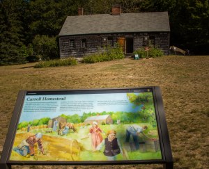 Carroll Homestead is a pioneer home preserved by the park service. The day we toured there was an open house which was very unique. Park hosts encouraged visitors to play with toys that would have been used, try on clothing of the era and guess what various tools would have been used for. It was fun.