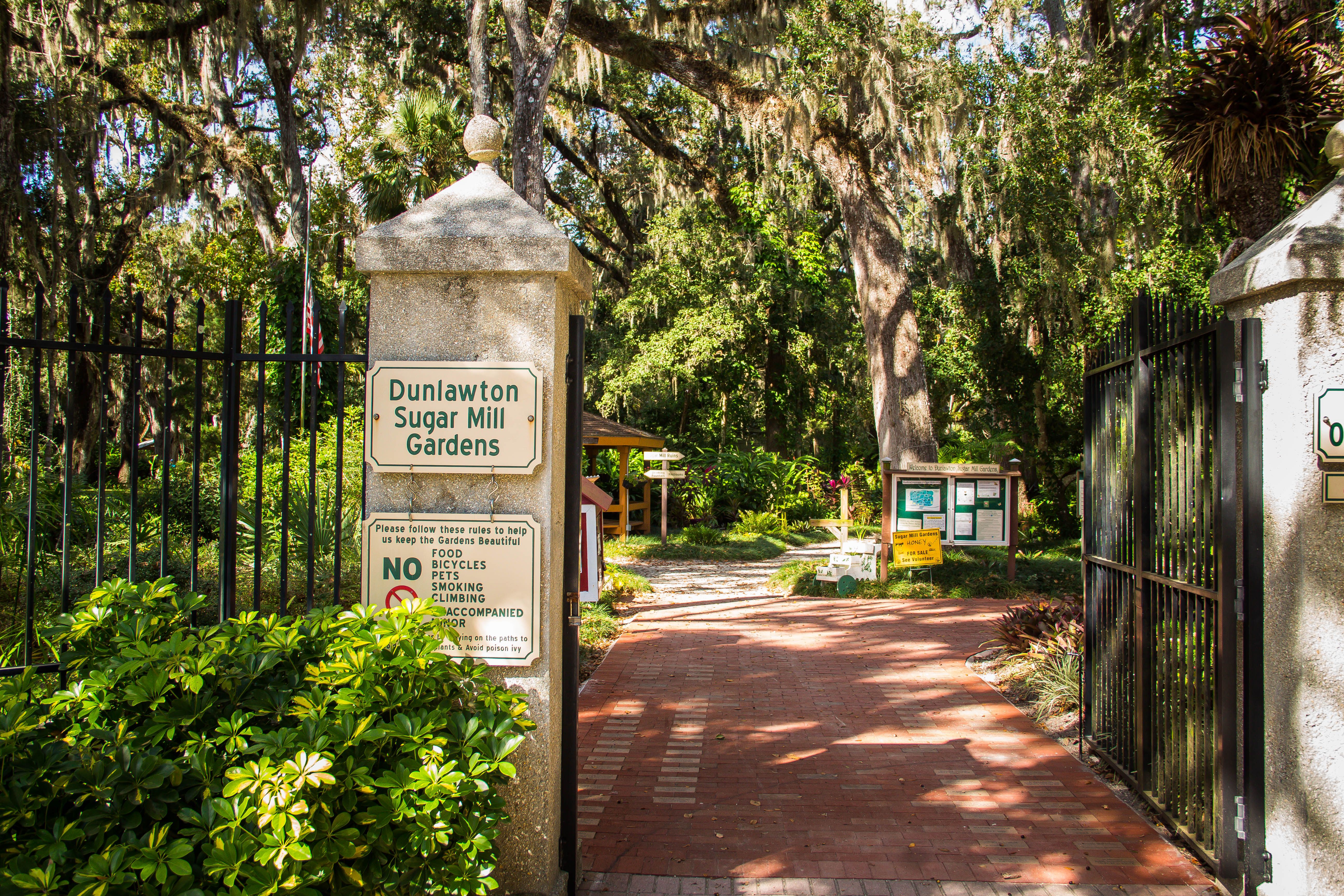 Dunlawton plantation and sugar mill was a north Florida sugar plantation destroyed by Seminole Indians at the beginning of the Second Seminole War. Its located in what is now Port Orange Florida along the Atlantic coast. The ruins are now part of Dunlawton Sugar Mill Gardens, a botanical garden which was once part of Bongoland an early theme park built in 1948.