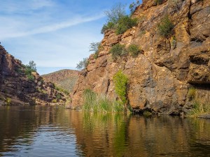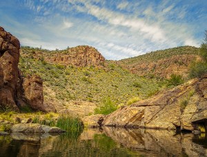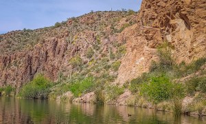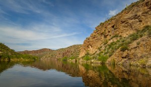 We are always on the lookout for kayaking opportunities so imagine our surprise at finding a kayakable lake on the Apache Scenic Loop highway in the Superstition Mountains. Canyon Lake was created in 1925 when the Salt River was dammed. It is one of 4 lakes in the area. We had a great day paddling the lake and up little canyons where we literally had to back out. Great day, perfect weather, no crowds during the week. One of our favorite paddles of all time.