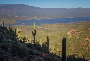 Casa Grande gave us a good jumping off point to explore the greater Phoenix area. The Apache Scenic Loop is a spectacular highway tour of the Superstition Mountains. Starting in Apache Junction east of metro Phoenix the route took us past Tortilla Flat and 22 miles of dirt road along with 3 reservoirs. After arriving back on pavement at Roosevelt Lake we were surprised to find Tonto National Monument, an Ancestral Puebloan monument in a beautiful setting.