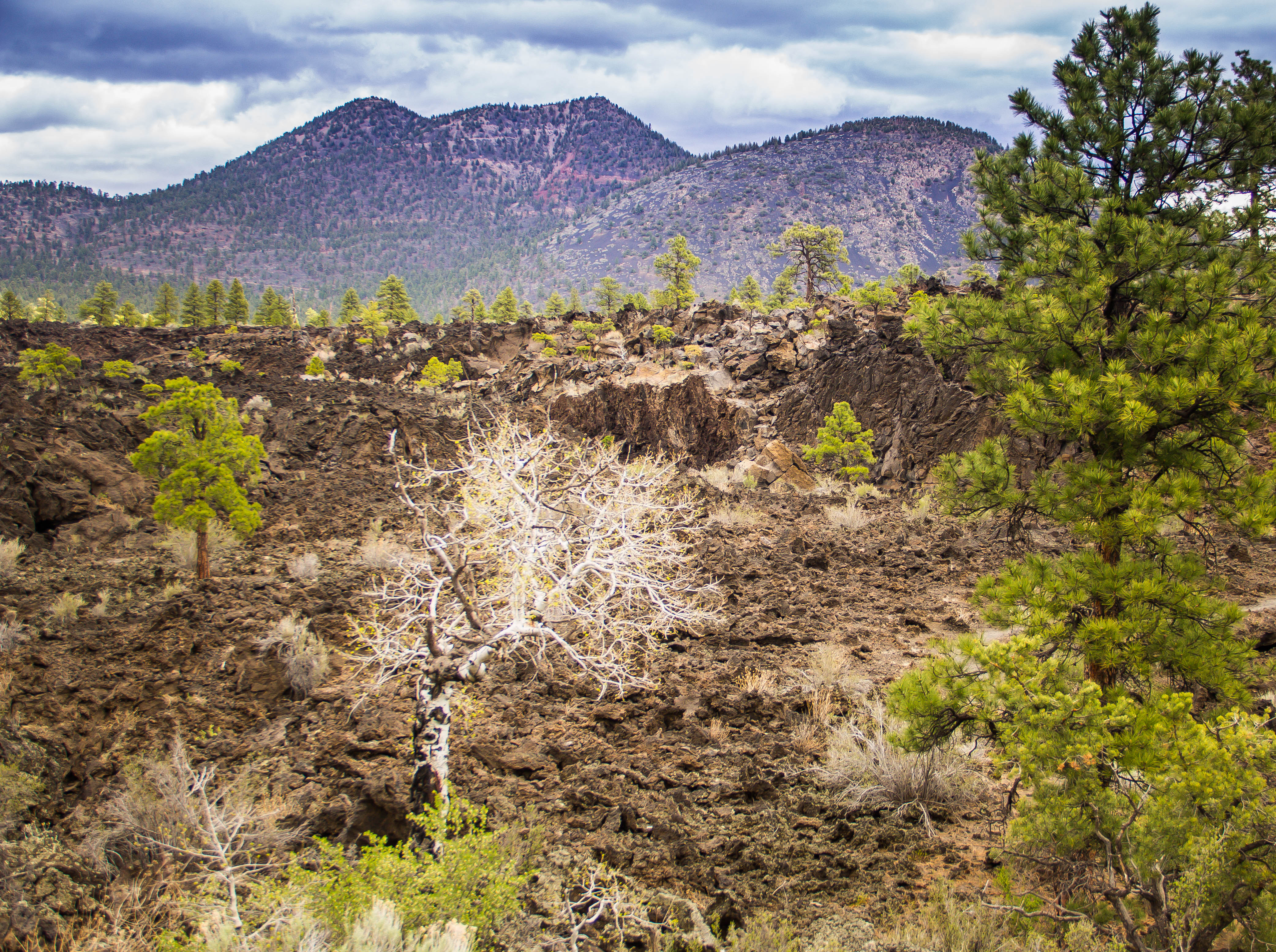 Sunset Crater Volcano erupted in 1085  spewing red hot lava and ash over people who had lived here hundreds of years.  Most fled but returned later to farm the changed landscape.  Today the volcano, cinder cones and solidified lava flows are stark reminders of earth’s violent potential.  Slowly flora and fauna have returned too.