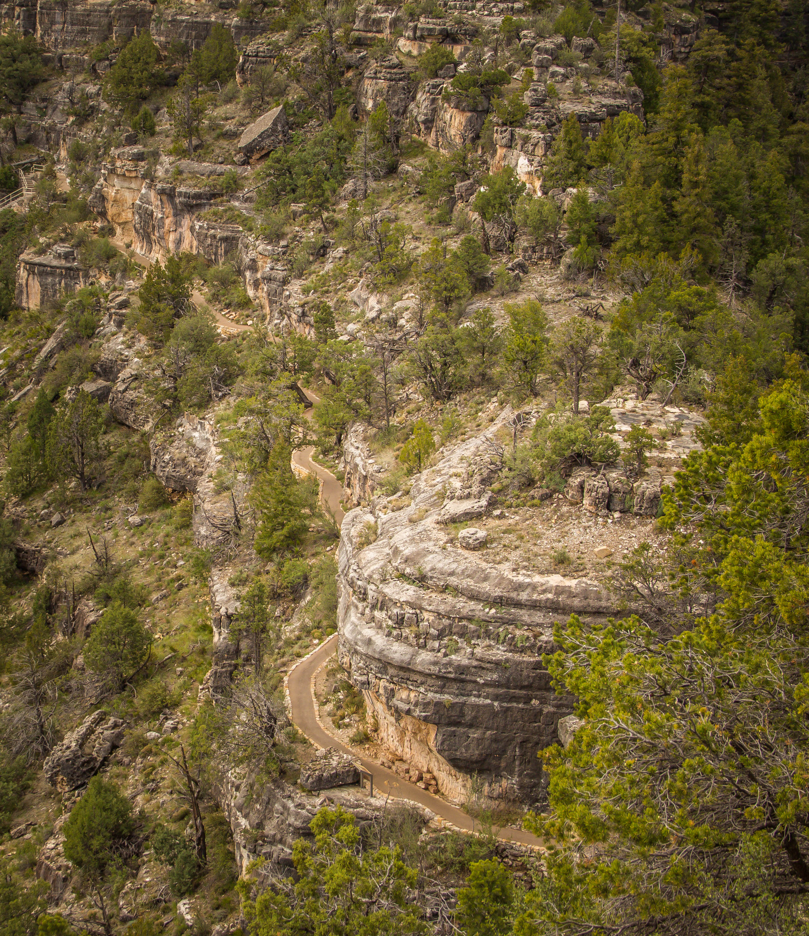 Walnut Canyon National Monument preserves dwellings sheltered by overhanging cliffs in a canyon inhabited over 800 years ago.  It was named a National Monument in 1915.  Artifacts indicate Archaic people had visited the canyon for thousands of years.  The plantlife zones of the canyon range from Sonoran Desert to cooler, moister Pacific Northwestern forests.  The varied landscape was probably a great benefit to native people.