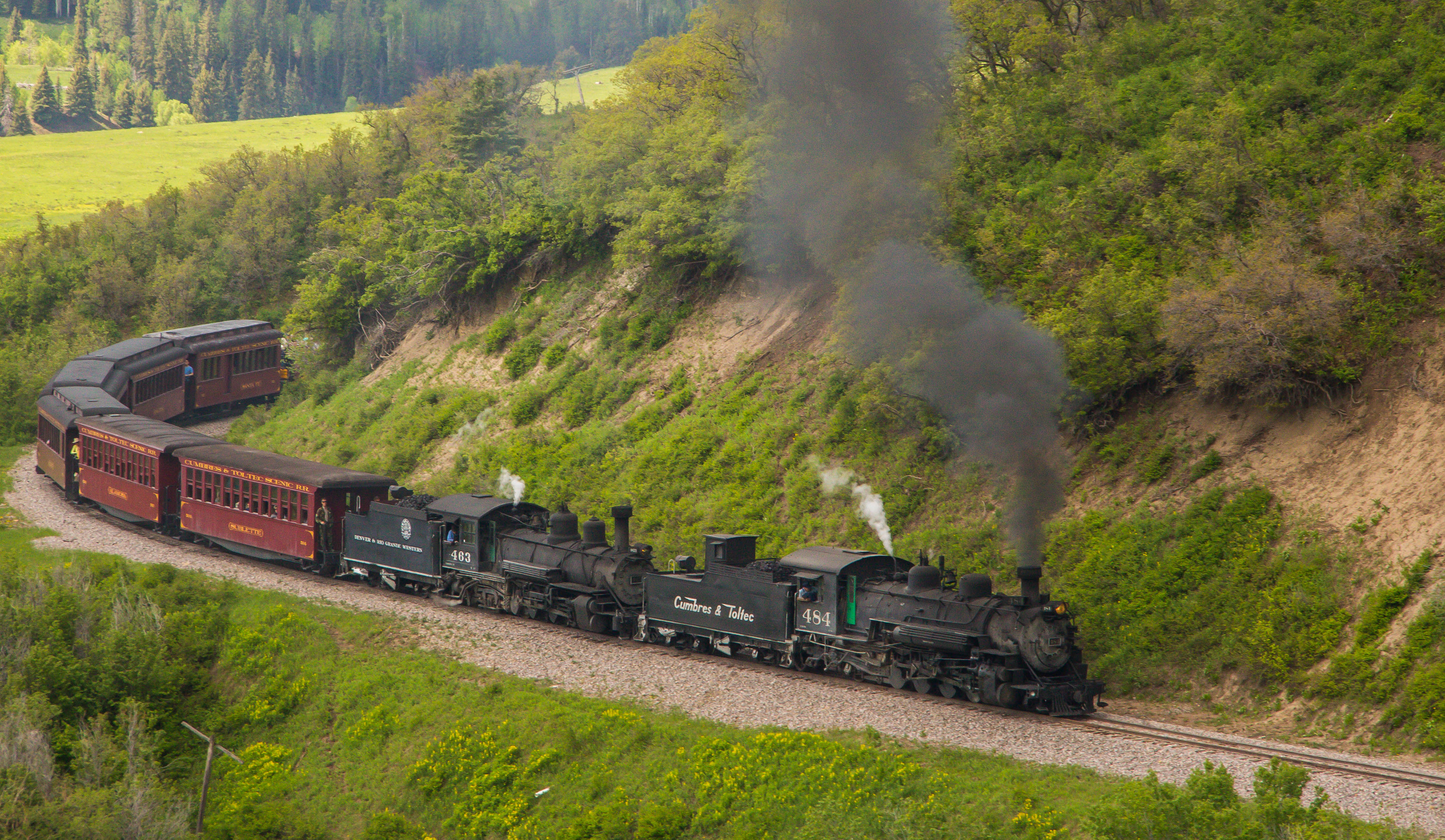The Cumbres and Toltec Scenic Railroad runs from Chama NM to Antonito CO on a preserved portion of the old Denver and Rio Grande Western Railroad. It is consistently ranked the number one scenic railroad in the United States. Its 64 miles of unspoiled beauty. Its narrow gauge railroading at its best. We love it.