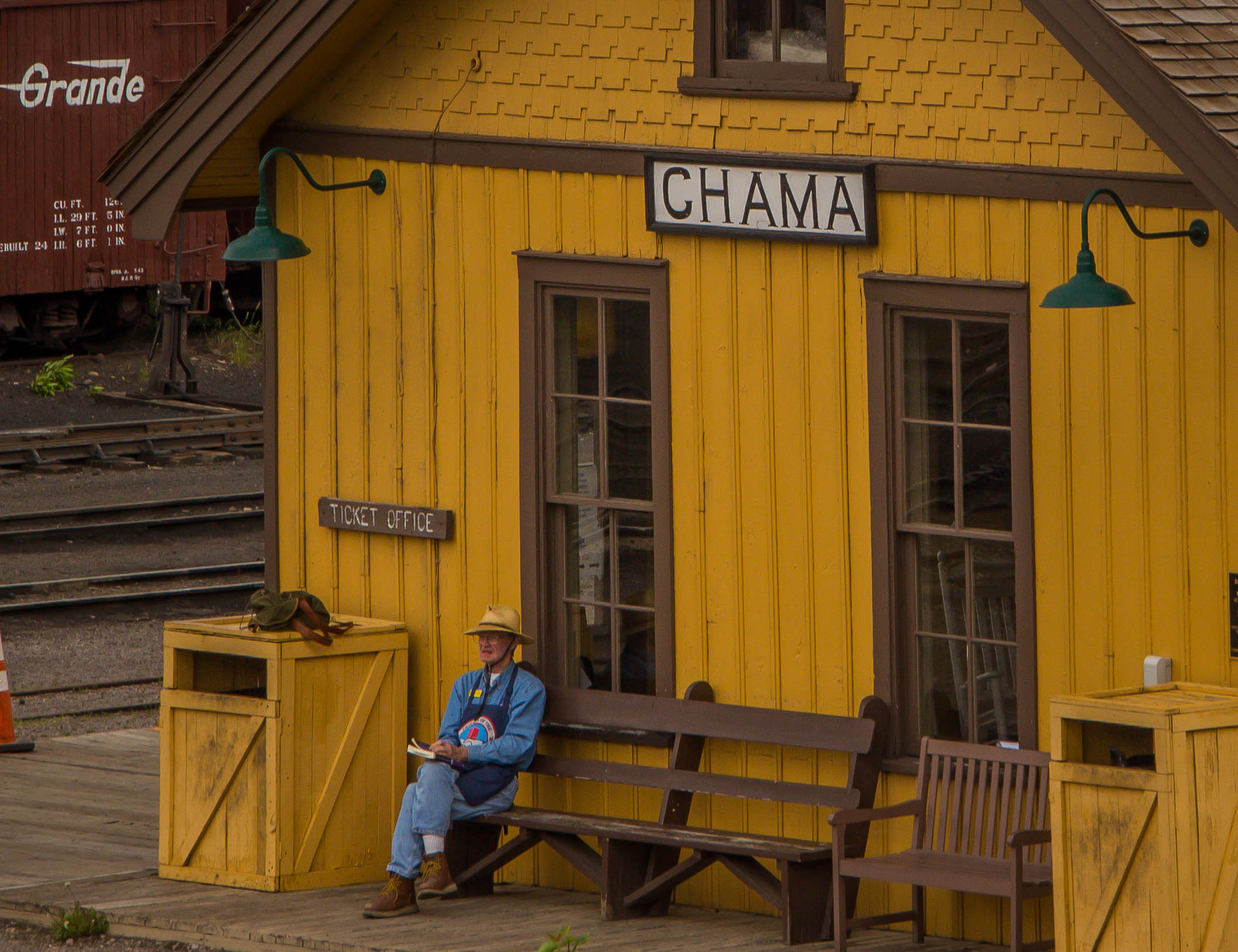 Our friend Grant Luckhardt is a volunteer on the railroad and joined us for a ride on the entire length of the line from Antonito to Chama. The train travels across the Colorado prairie into New Mexico, then thru the Mud Tunnel and the Rock Tunnel, into Toltec Gorge, the Los Pinos valley, Tanglefoot Curve, up and over Cumbres Pass (10,512 feet), around Windy Point and down to Chama. Every trip includes a lunch stop with a large and varied buffet lunch.