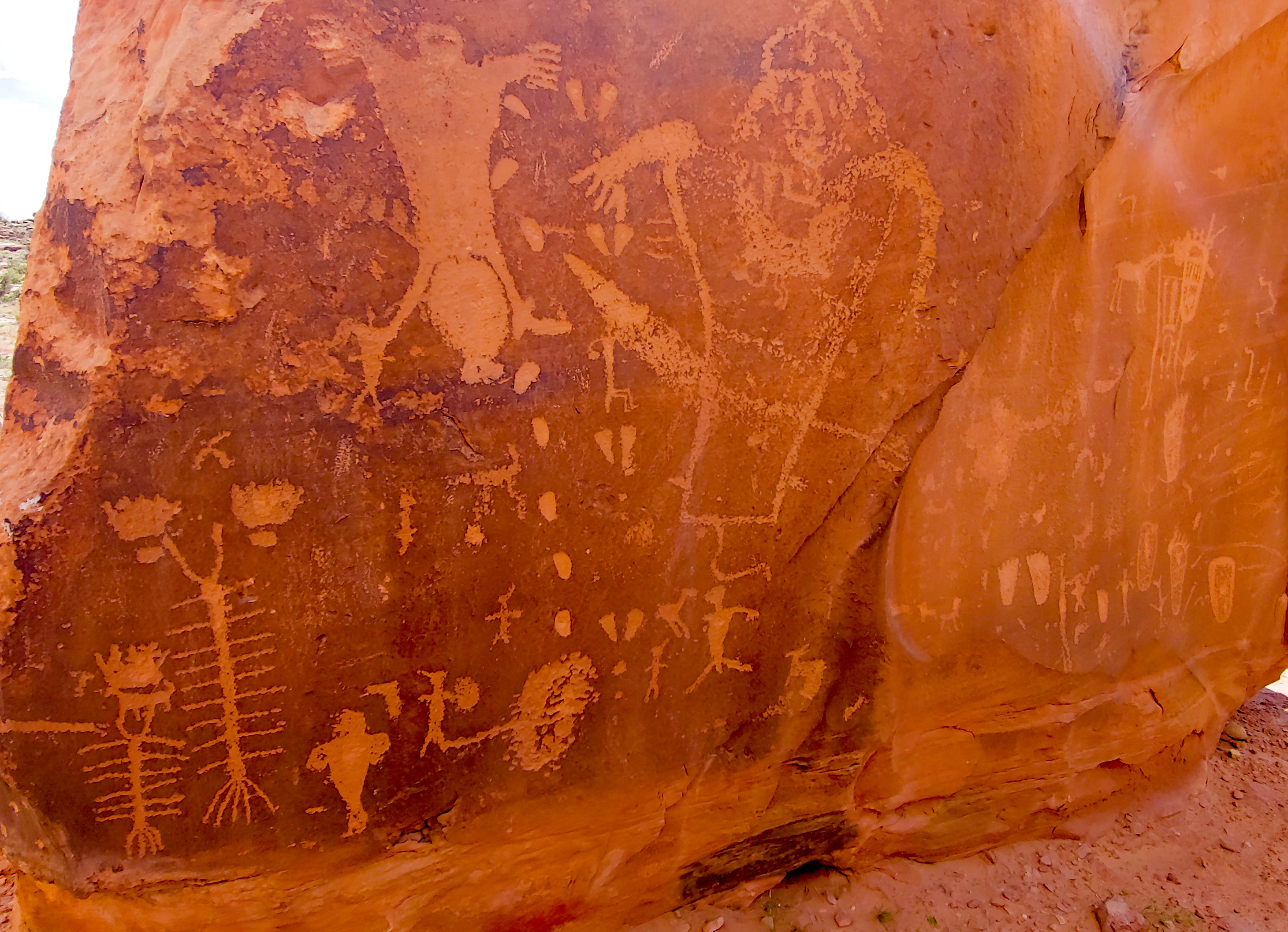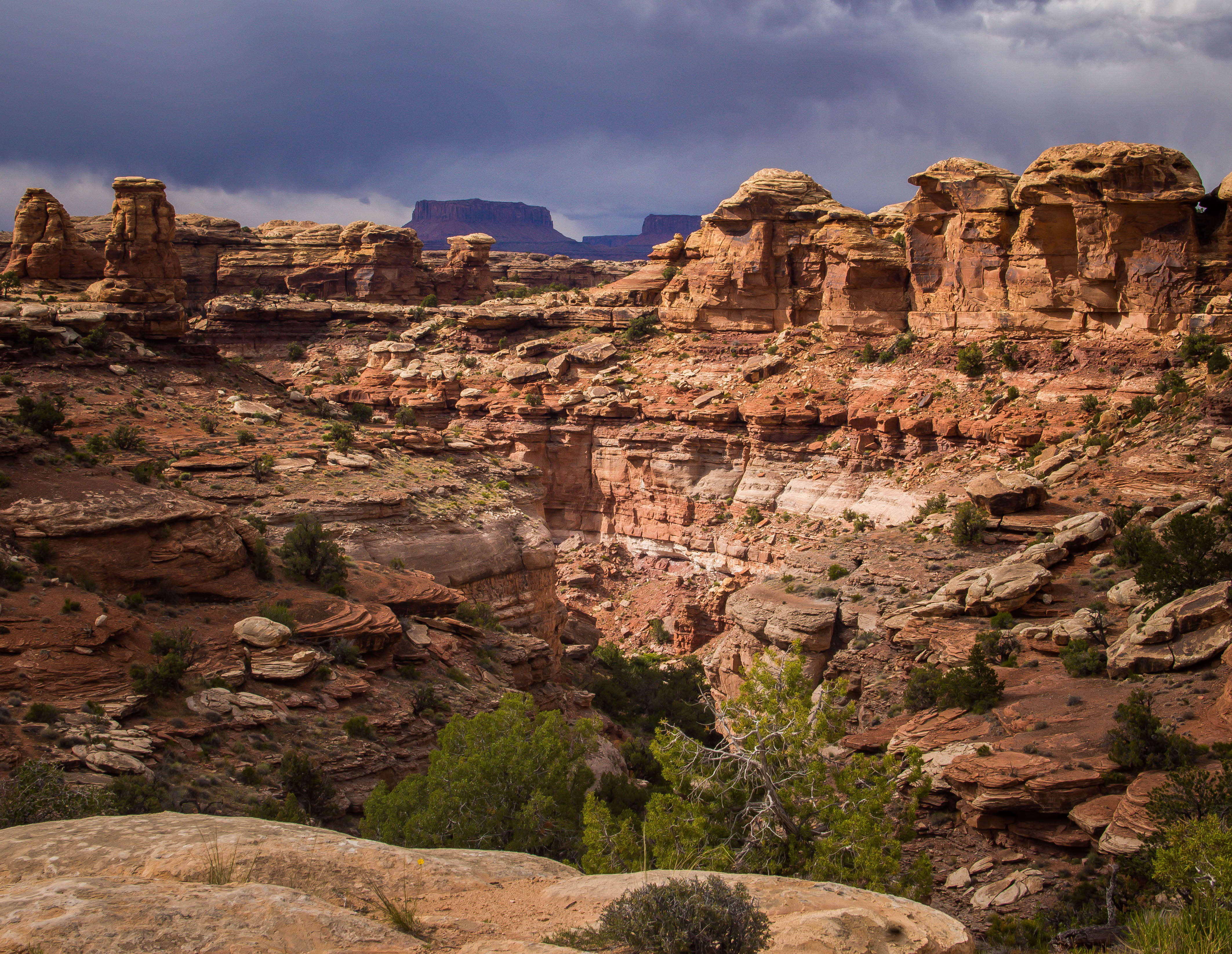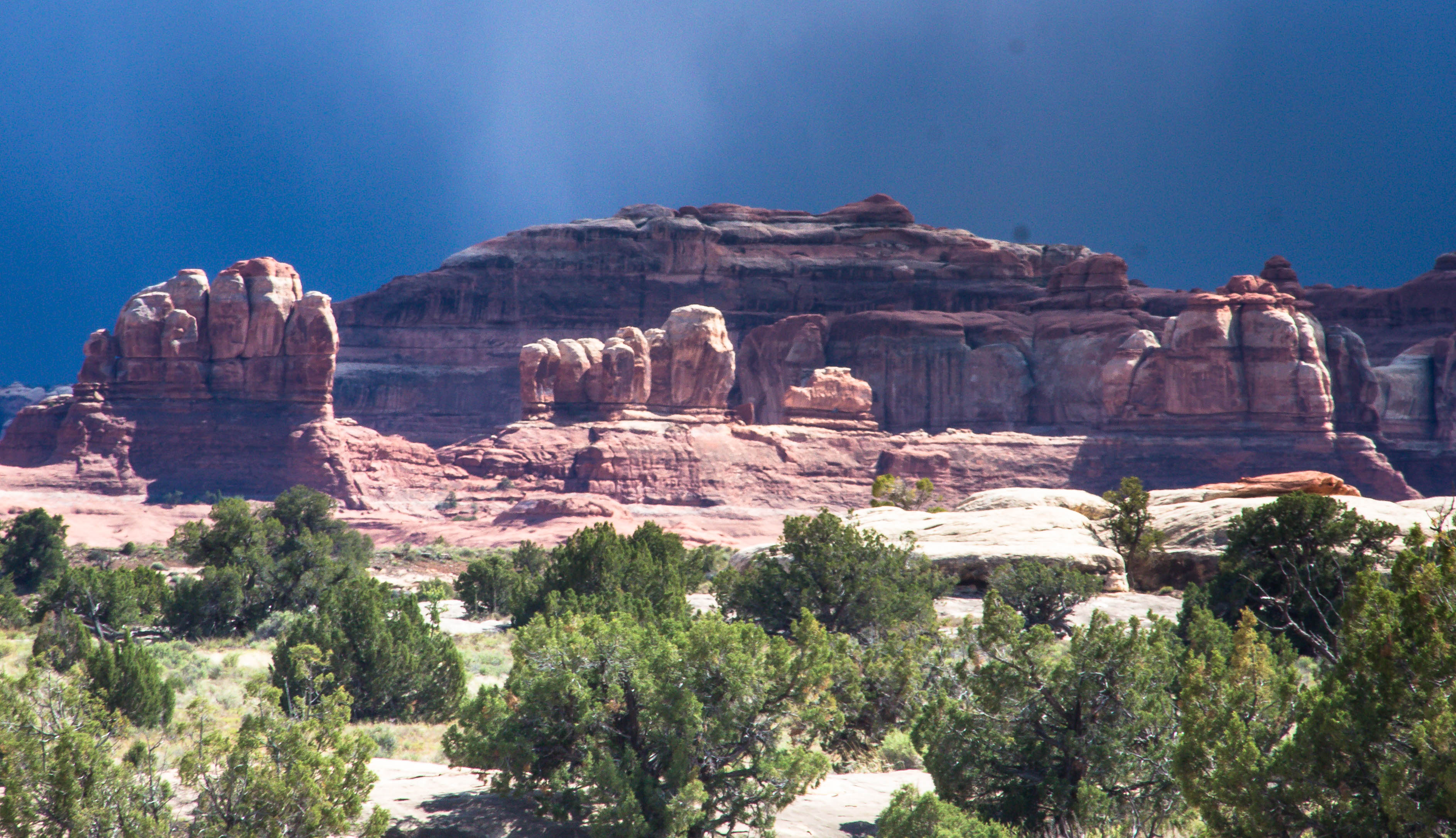 One of the main attractions near Moab is Canyonlands National Park. We have visited the Islands in the Sky section before but never the Needles section. Church Rock is near the turnoff. Then comes Newspaper Rock, one the largest rockart panels we’ve seen. Near the visitors center we did a hike to more rock art, a cowboy camp and a well preserved puebloan granary. We could’ve hiked up to the top of the rock but lightning changed our plans. More left to see on another visit.