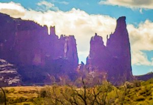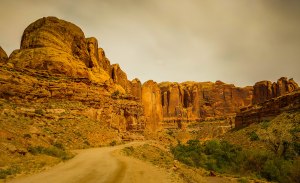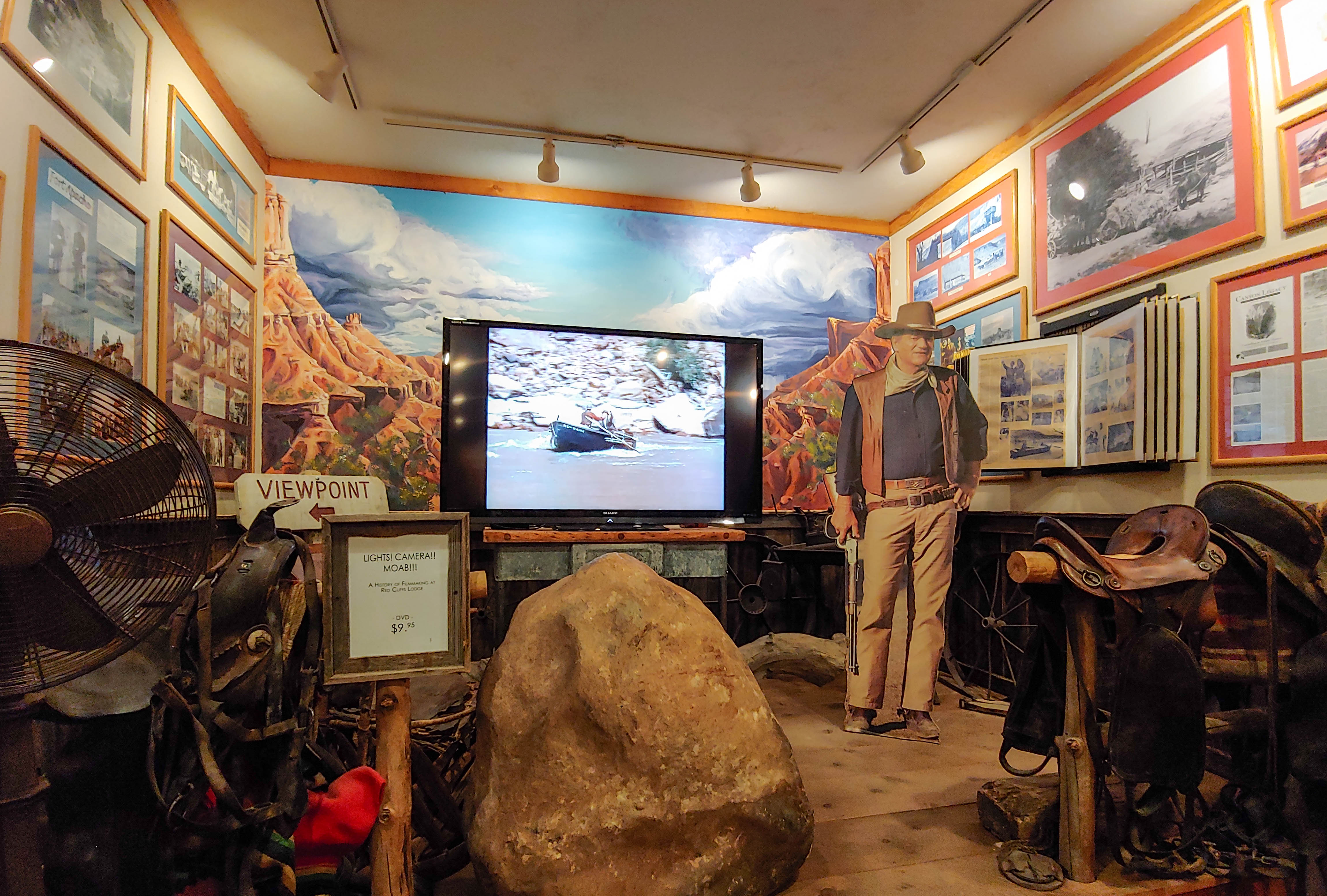 We found a spot suitable for Goldie in an area called Klondike Bluffs North. It was east of US 191 about 15 miles north of town. There’s a good gravel road about 2 miles into an area with multiple previously used sites. The weather was unsettled and we had rain 5 days in a row. (Yes, we had rain in Moab). The red dirt of Moab turns to slippery mud when wet. We were glad it dried out before we had to move Goldie again. The beautiful Red Cliffs Lodge on the Colorado River houses the free Museum of Movies and Western Heritage.
