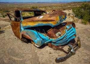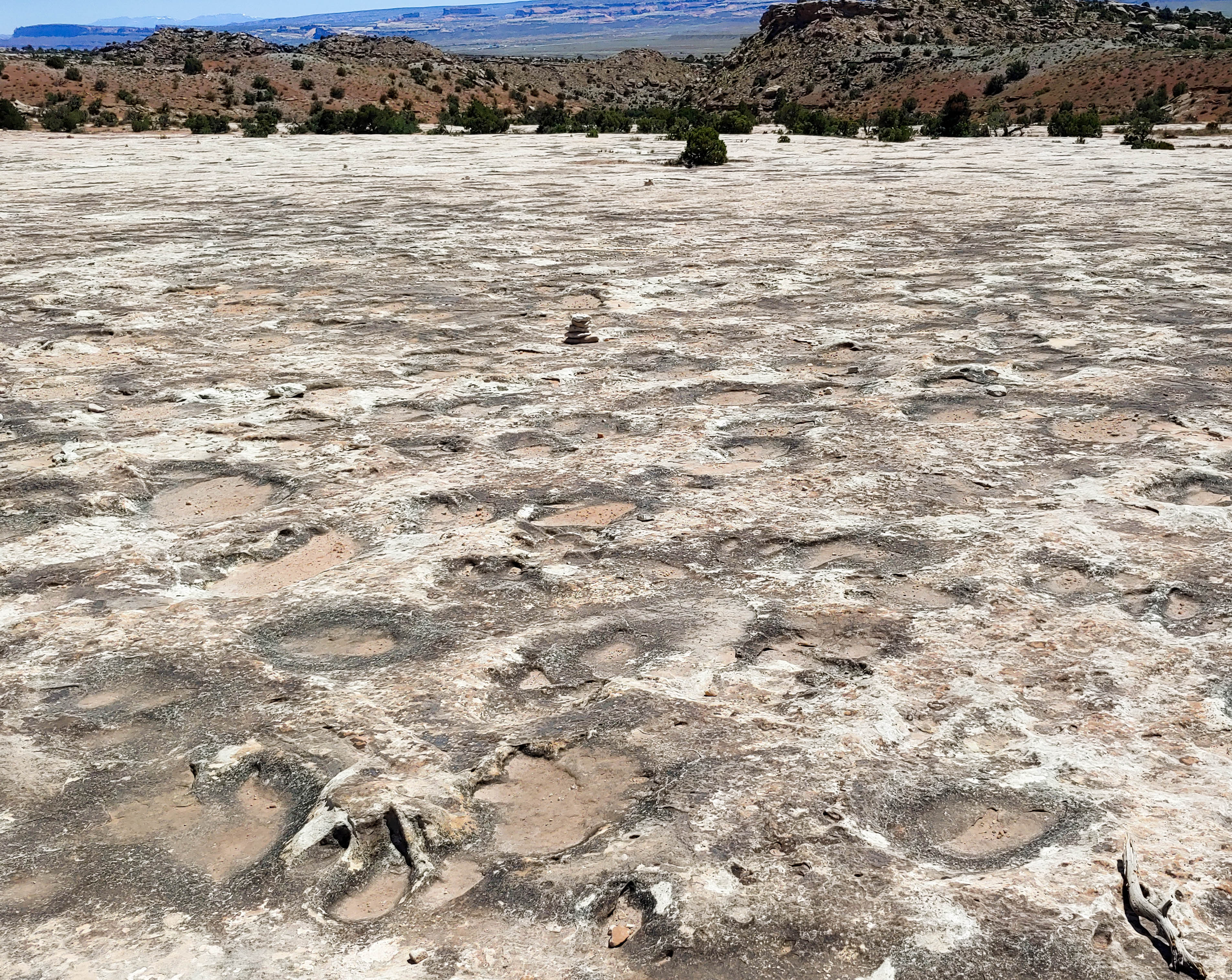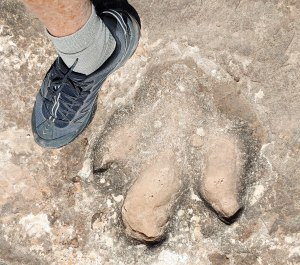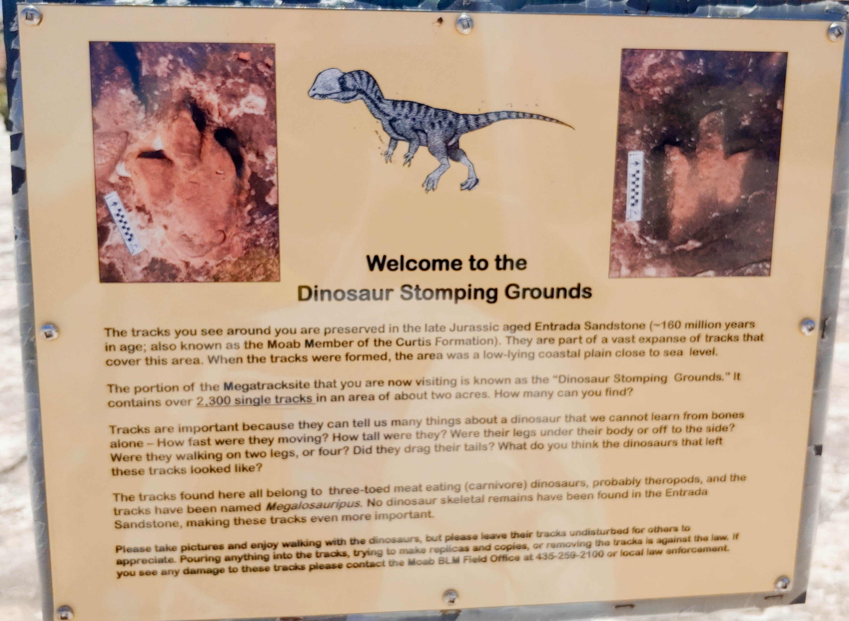 Hiking around Moab is abundant and we found two great hikes walking from our site at Klondike Bluffs. This area is also known as Copper Ridge Dinosaur Tracks. The one trail we hiked is called Dinosaur Stomping Ground as there are over 2200 fossilized footprints in the rock ridge. It was a beautiful hike to an overlook of a valley in front of Arches NP. The other hike led us to giant allosaurus type footprints in the rock and then up another ridge to an abandoned mine and equipment.