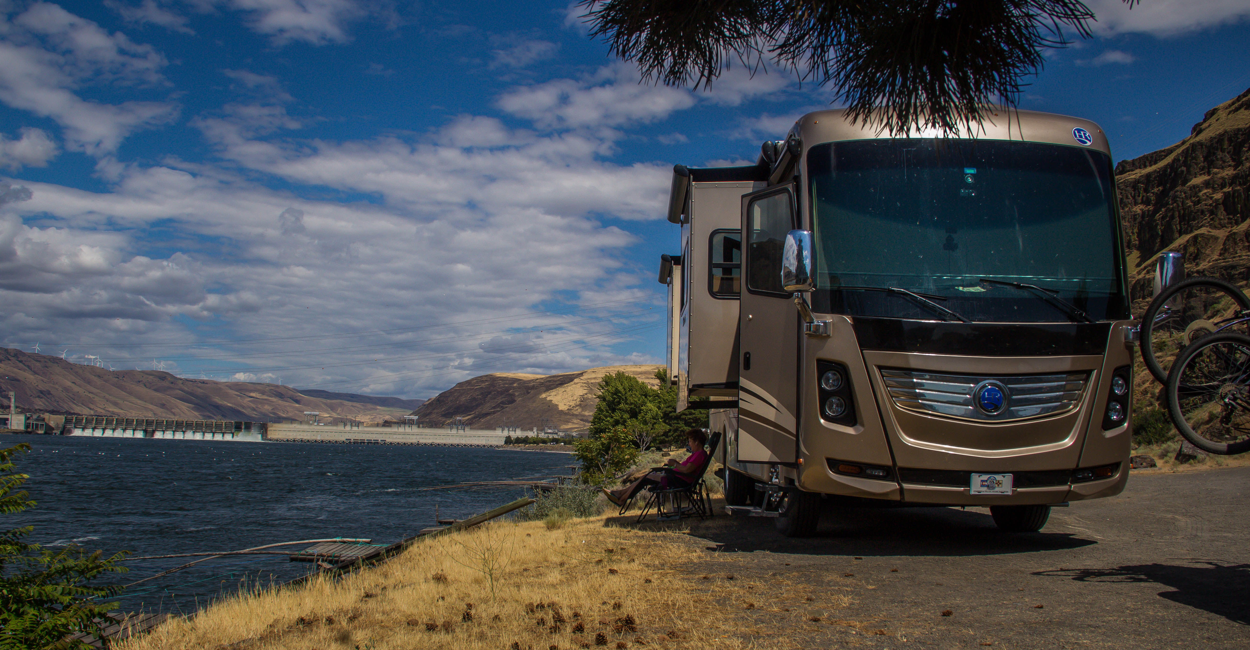 Our route to the Oregon coast took us along the mighty Columbia River. It is so impressive. We found a free camping site at a Corps of Engineers area called Rufus Landing near John Day Dam. Certain times of year this area is used by Native Americans for salmon fishing using scaffolds. This activity is protected by treaty and would be interesting to see but just now we got to enjoy the riverfront views. There are busy UP and BNSF main lines running on opposite sides of the river. We also saw hundreds of giant white pelicans that call this place home. Just before dark a Columbia River Cruise Ship passed by and entered the locks to go upstream. We were so happy to find such a serene place an hour from Portland with incredible views.