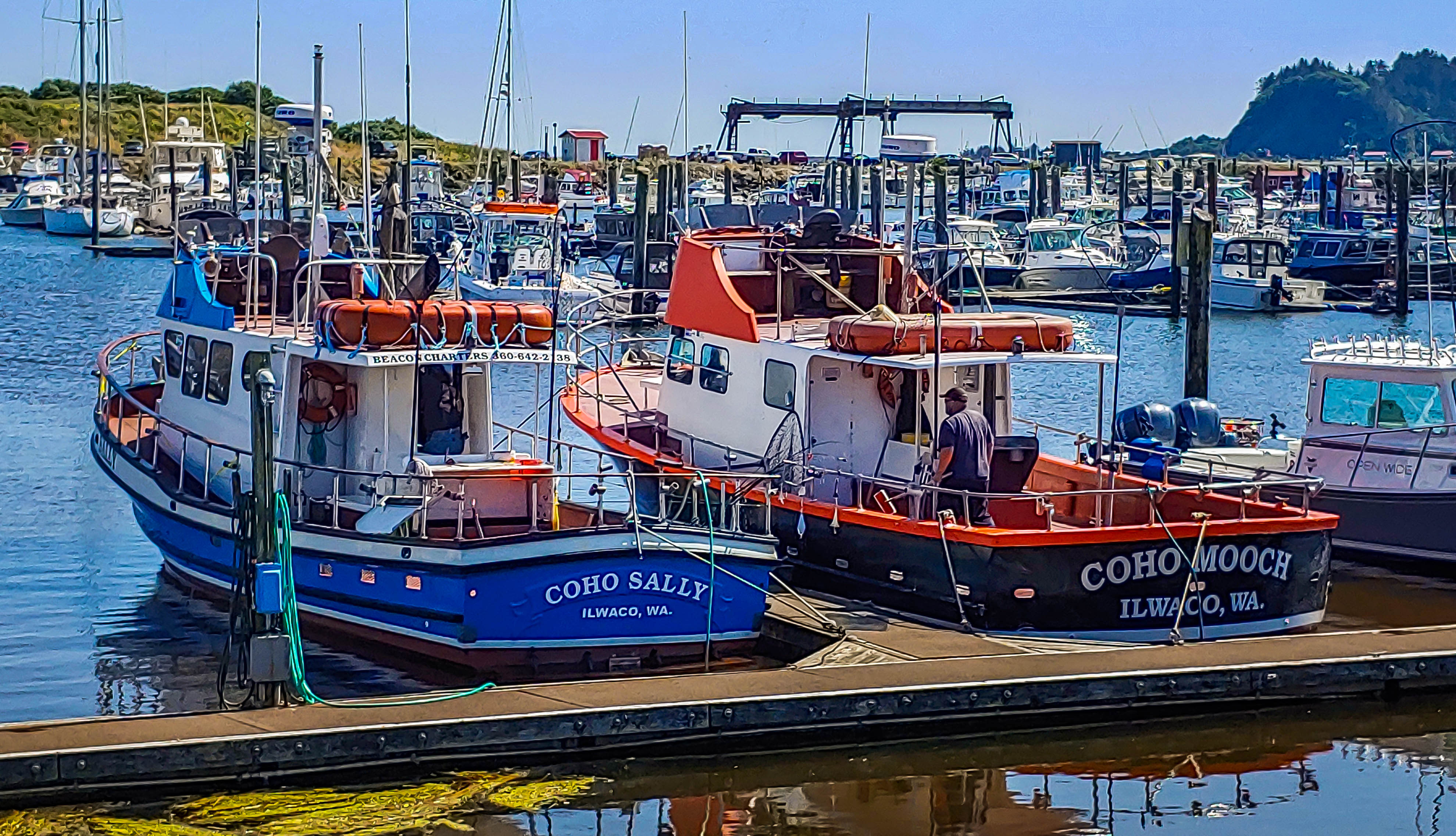 Our goal this Summer was to babysit our granddaughter for the month of August before she started kindergarten. That meant a visit to the great state of Washington. We crossed the mouth of the Columbia River to enter the state near the town of Ilwaco. Ilwaco is a thriving fishing town and we arrived during the Summer Coho salmon run just offshore. We booked a trip on the Coho Sally and caught our limit of 2 fish each.