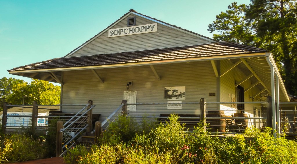 Near the park is the small town of Sopchoppy. While pretty sleepy today it still has a restored train depot with historic displays. The depot dates from the 1890s when the CT&G Railroad platted the town. The Myron Hodge river park nearby has a nice rv park and boat ramp.
