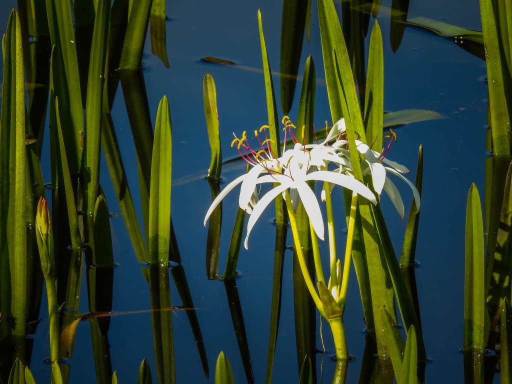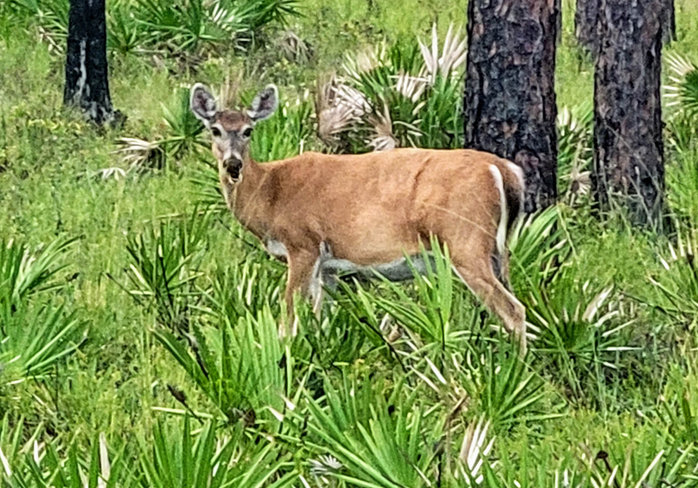 One of our favorite things about staying in a state park is the wildlife. Just taking easy walks on trails in the park and campground we saw lots of birds, several deer unafraid of humans and the amazing white squirrels. It is thought that these squirrels are descended from those brought to America by gypsies banished from Spain by King Charles in 1499. The European mammals bred with native American squirrels. Eventually they were brought to a fishing camp on the Ochlockonee River in the 1950s. From there they spread throughout the area.