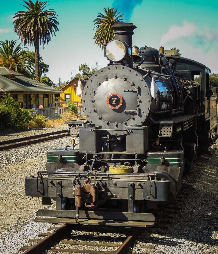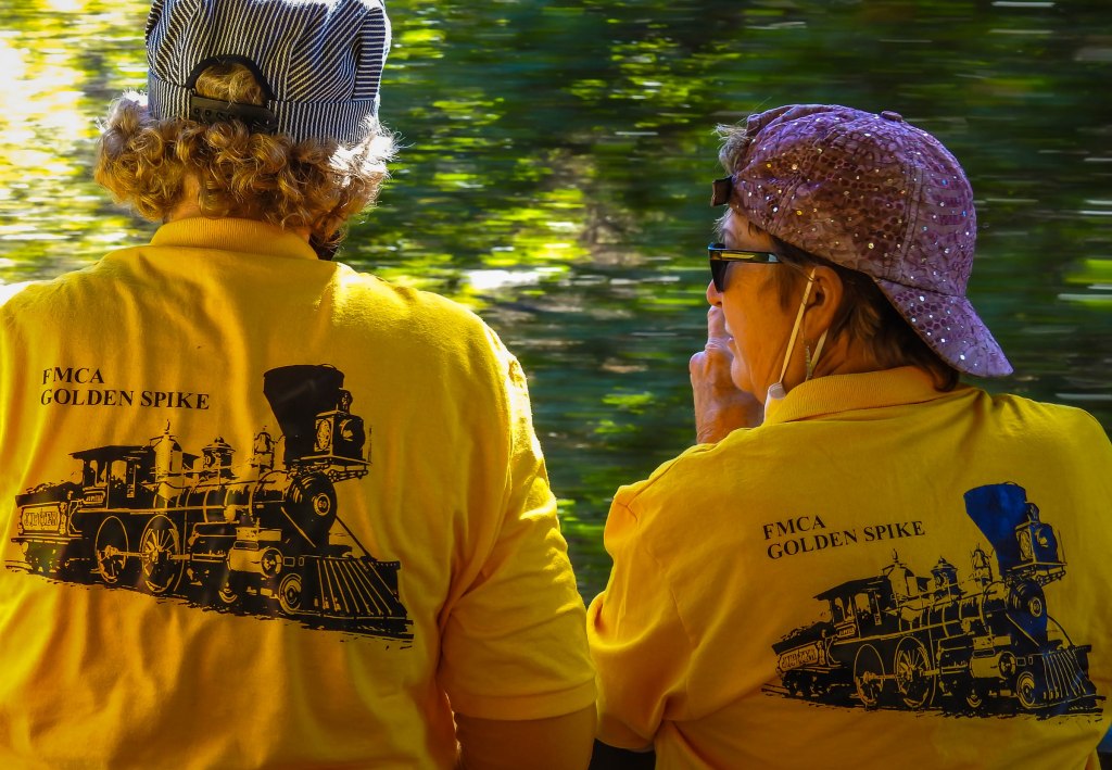 The Golden Spike Chapter of the Family Motor Coach Association is a group of RV enthusiasts who also love trains We were fortunate enough to join in their rally in Pleasonton California. We had 16 RVs and 32 people attending. Huge thank you to Dan St. John for organizing the event. We stayed at the Alameda County Fairgrounds RV Park and rode the Niles Canyon Railway which was operating a steam locomotive.