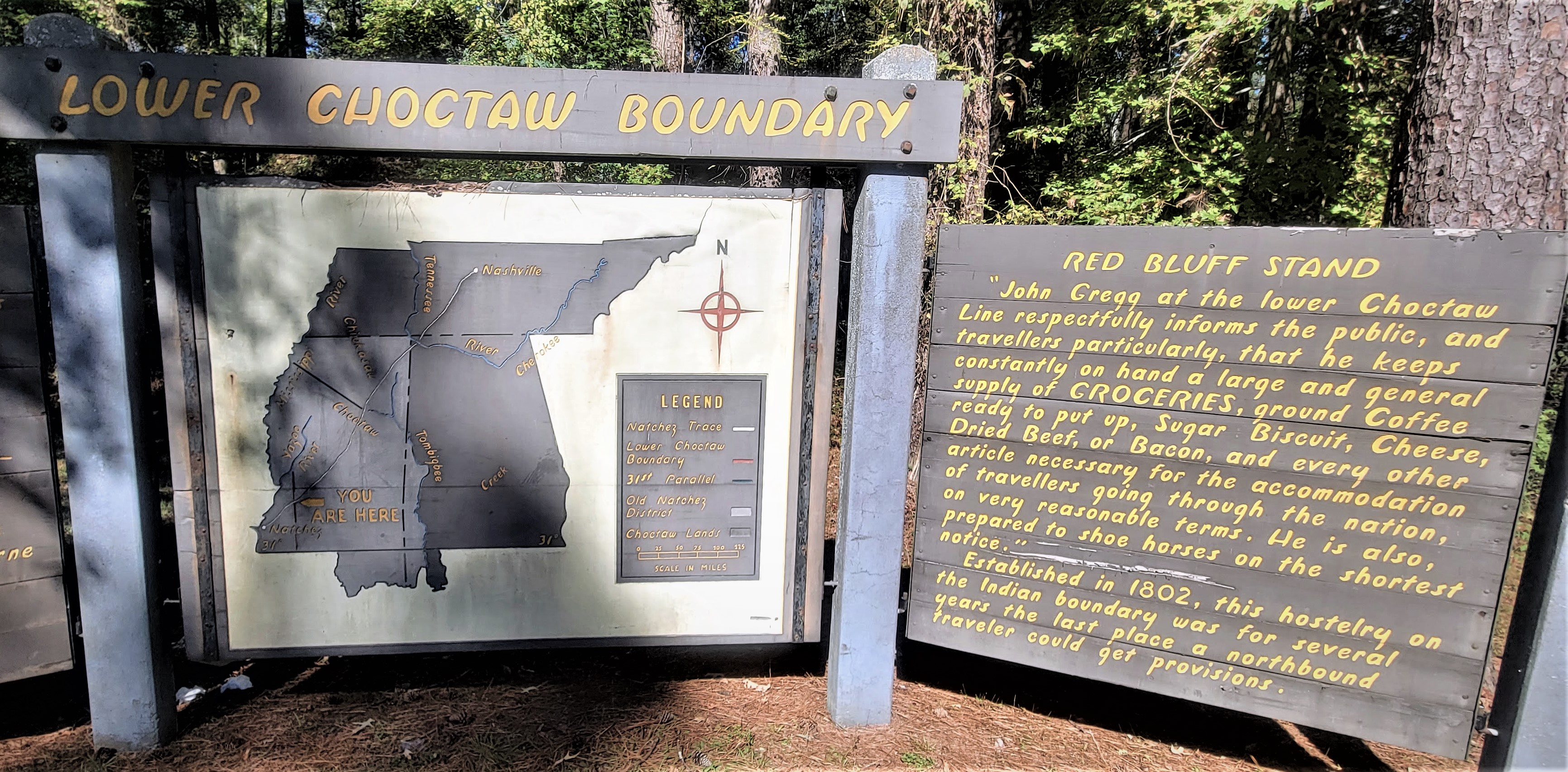 Rocky Springs is now a ghost town near the parkway. In 1860 it had a population of 2616 inhabitants 2000 of whom were slaves. The Civil War, yellow fever and the cotton boll weevil led to the demise of the town. The spring dried up and all that remains is the historic church and a cemetery.
