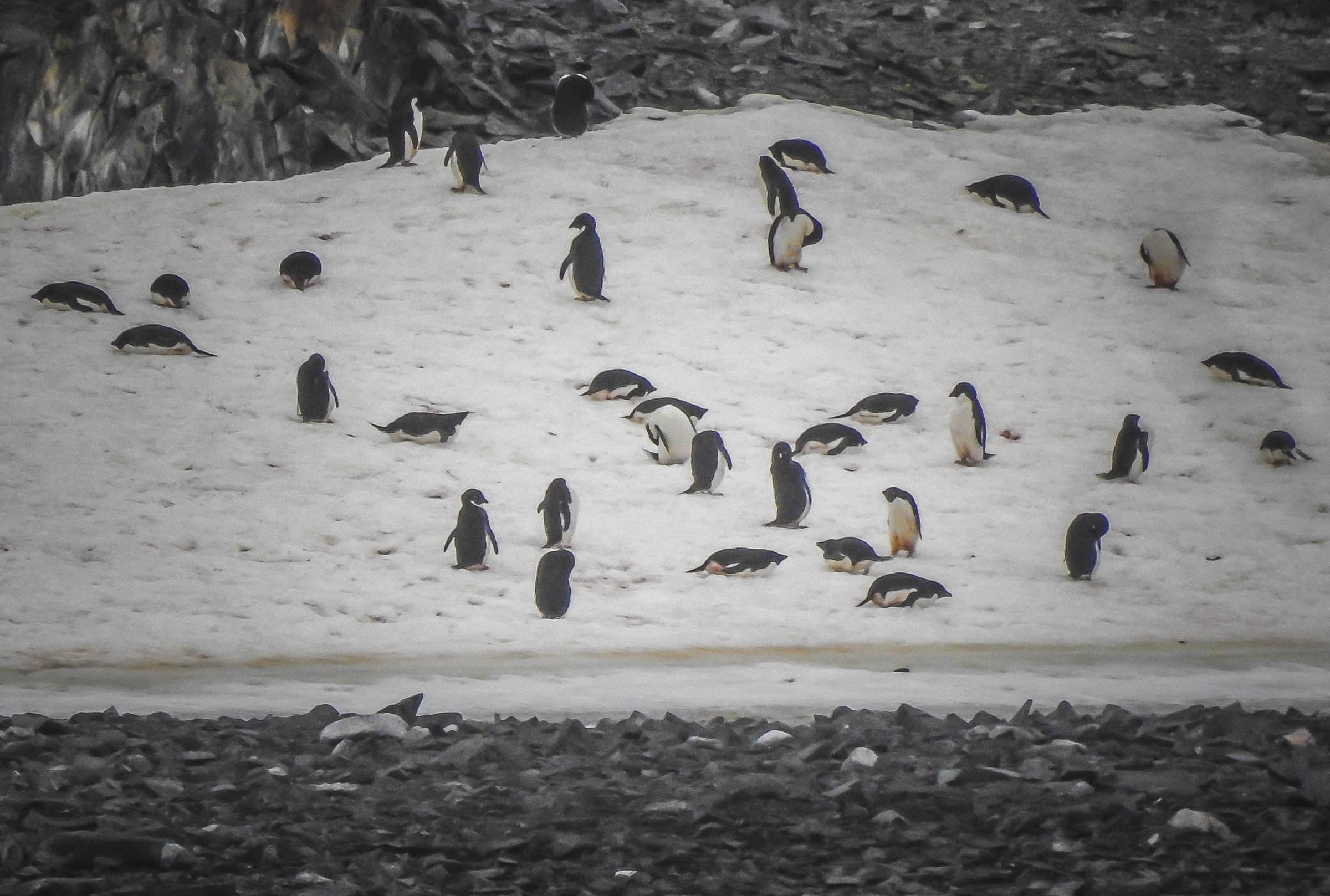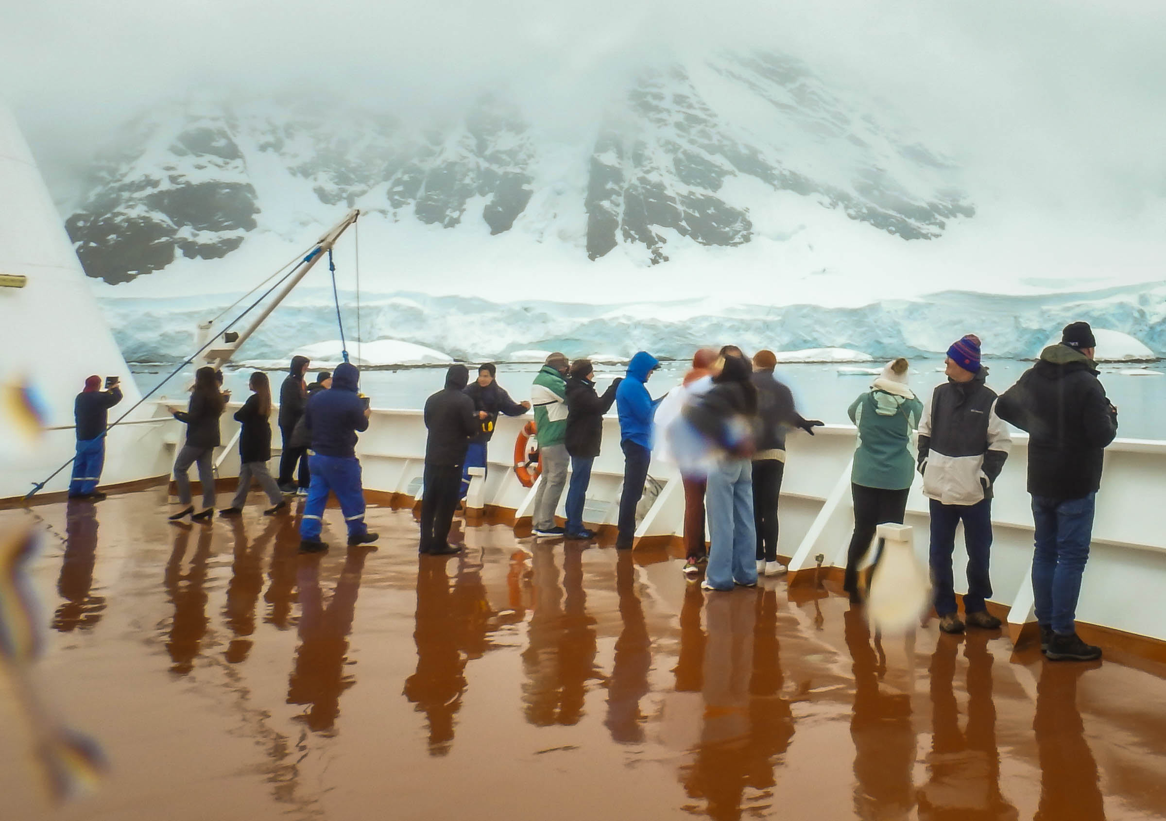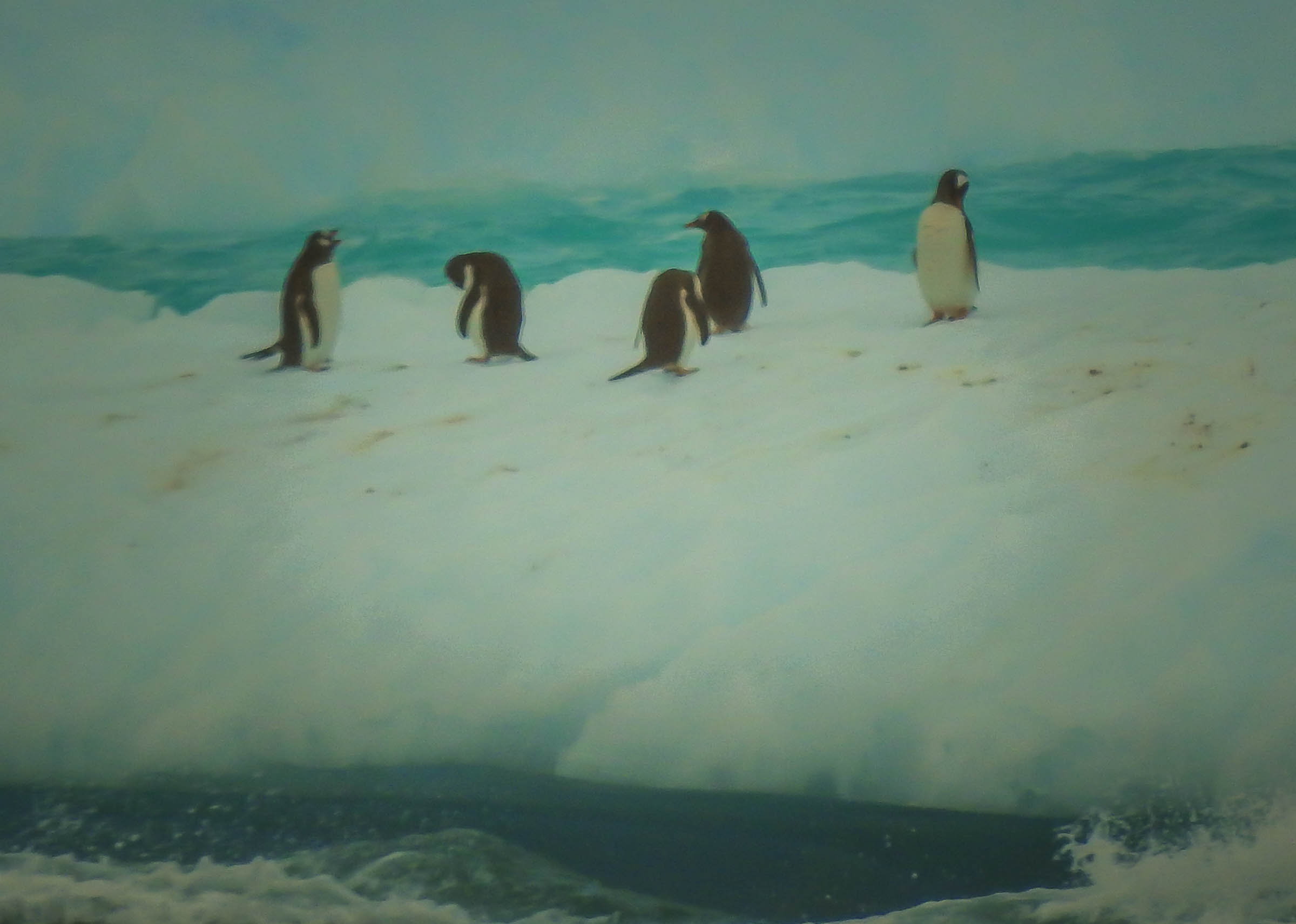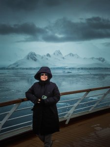 Antarctica. This was one of the main attractions for taking this cruise and while it wasn’t quite what we expected it was spectacular and memorable. We had 3 scientists and 2 ice pilots on board for all our days there. We had a 6am start for our first day in Antarctica. It was cold and foggy which then turned into cold and snow and wind. Cruising Dallman Bay and Paradise Bay we saw some humpback whales bubble feeding, gentoo penguins and orcas but not as many as we had hoped. The crew had fun building snowmen on the pool deck. By the end of the day ice conditions caused us to abort Lemaire Channel but we did get to see Palmer Station, the US research station. The second day we cruised Neumeyer Channel, Wilhelmina Bay and Errera Channel where we heard singing whales saw lots of cute Adelie penguins. The third day we headed to Hope Bay to see whales but the ice again blocked our way. We had to turn around in winds that had picked up to 100 mph! This caused a great listing of the ship, dishes crashing and anxiety among passengers. No one was seriously hurt because the Captain had sternly warned all to SIT DOWN. It was memorable. The fourth day we visited Deception Island, a volcanic caldera which is home to over 100,000 chinstrap penguins. We saw lots of icebergs and calving glaciers. At this point the weather was deteriorating with one low pressure storm after another. The captain regretfully cancelled our stop in the Falkland Islands, there was no way with 40 knot winds and we had to time our passage back across the Drake Passage to miss the worst of it. We still had the roughest seas of the cruise with waves up to 40 feet top to bottom and regularly hitting deck 3. It was exciting.