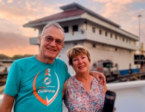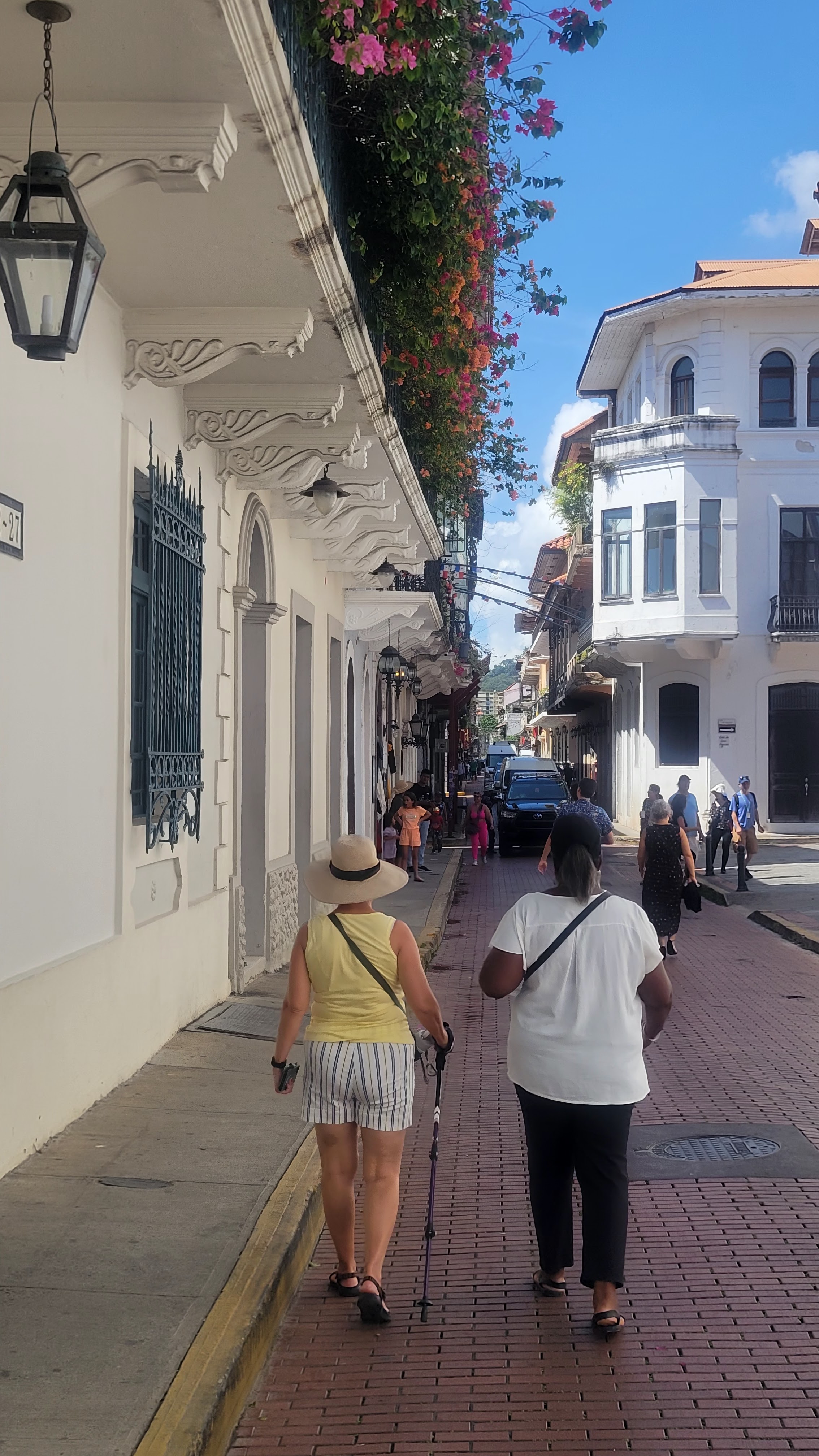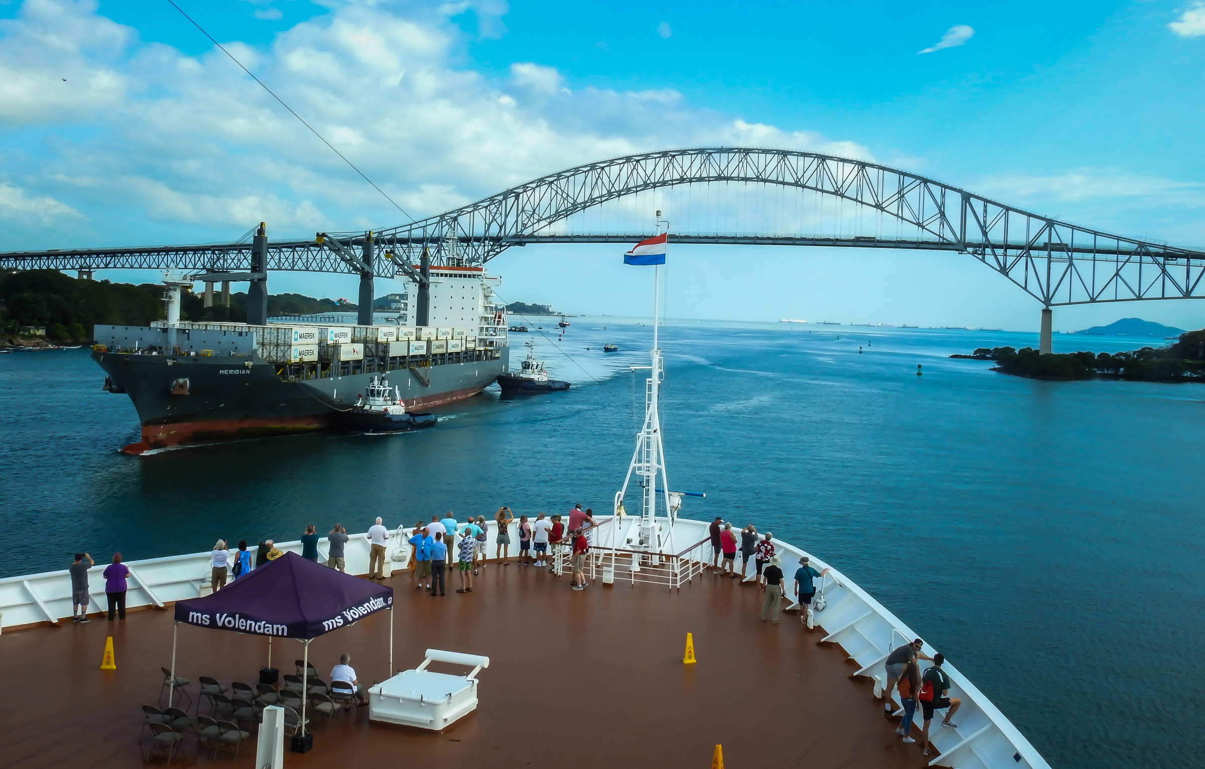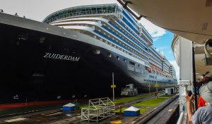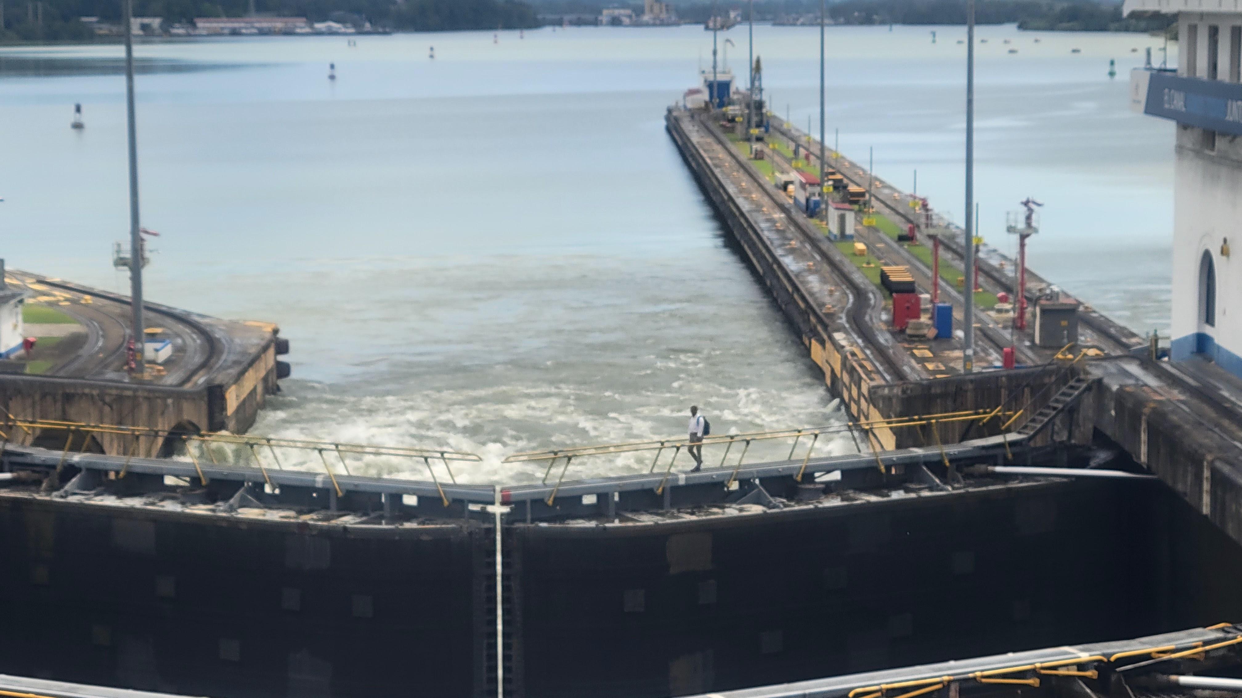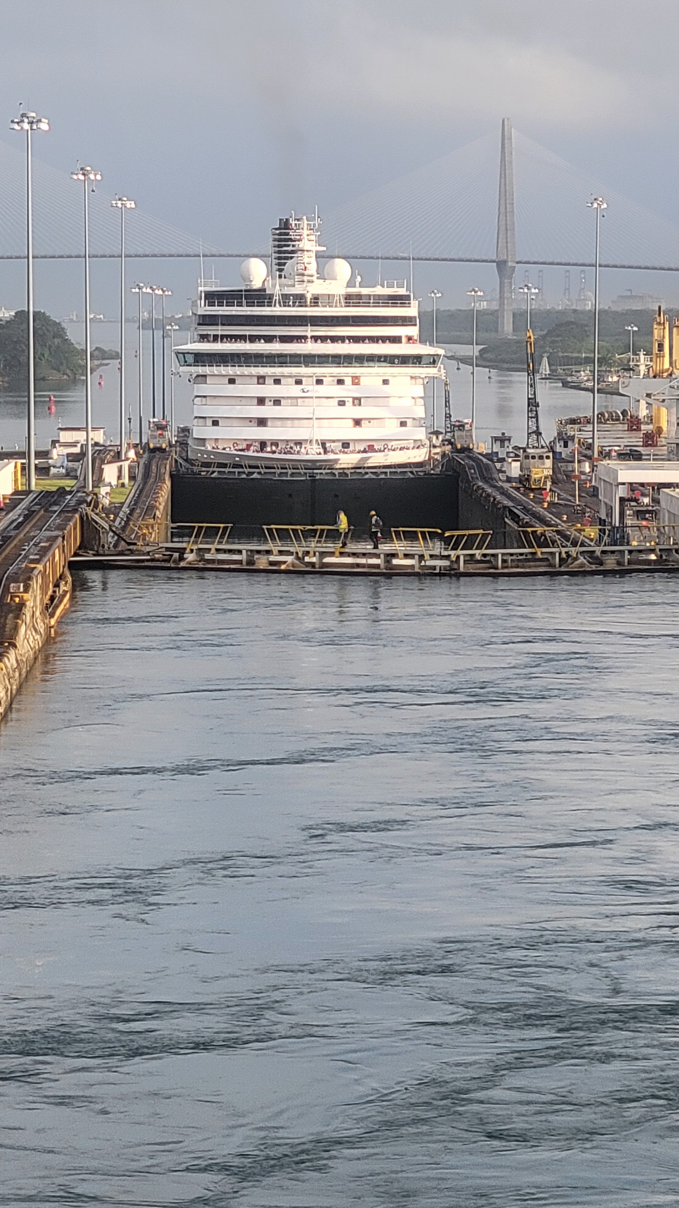 Cruising the Panama Canal. The canal always involves an early start, this time 5am! The captain opened up the bow deck so we could all see the sunrise as we entered the first lock at Gatun. It is exciting to traverse the famed canal. There is so much ship traffic and this time we were accompanied by our sister ship Zuiderdam on her cruise around the world. It was extremely hot and humid. So hot our phones stopped working. After the all day transit of the canal we docked at the new cruise terminal at Fuerte Amador Panama. The next day we grabbed a taxi/walking tour of the modern big city of Panama City as well as the old town, Casco Viejo. From here we head south along the west coast of South America crossing the Equator.