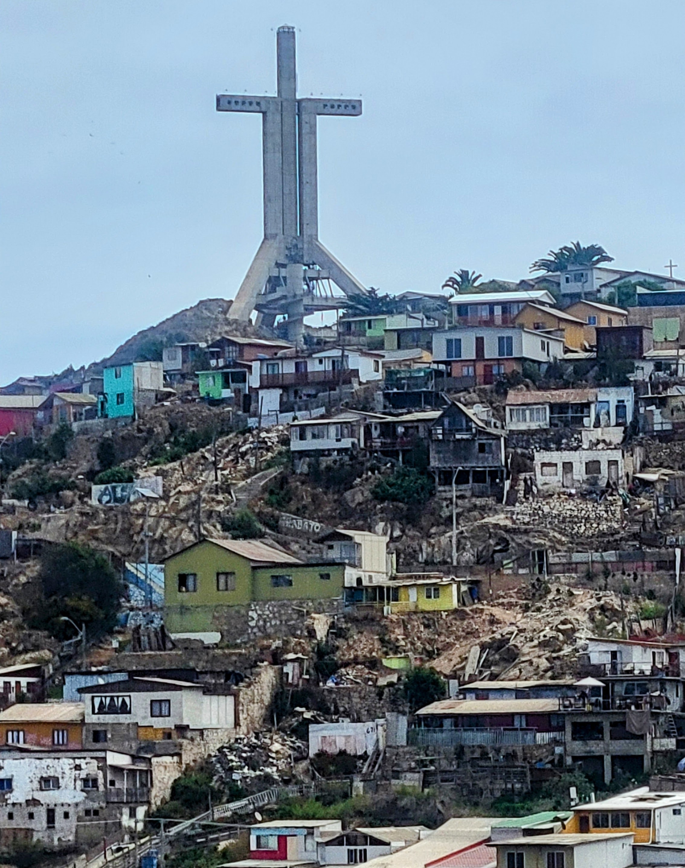 San Antonio Chile. San Antonio is the major port for the Chilean capital of Santiago. Santiago is a huge city and with the traffic it is no longer possible to do a day excursion from San Antonio. Instead we took a HAL tour to Valparaiso another busy port. The tour was lackluster other than a funicular ride up the hill to a good restaurant. We could see a Princess ship in the harbor there unable to dock to to the Pacific Ocean swells. Our own ship docked in San Antonio hired 2 tugboats (at a cost of $100,000) to push us against the pier all day because of the swells.