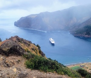 Isla Robinson Crusoe Chile. Located over 400 miles west of Chile in the South Pacific Ocean. From 1704 to 1709, the island was home to the marooned sailor Alexander Selkirk, who at least partially inspired novelist Daniel Defoe‘s fictional Robinson Crusoe in his 1719 novel. It is a rugged island where we hiked to the top of a mountain. We also explored caves formerly inhabited by political prisoners. Our departure was delayed several hours when a passenger had to be medically evacuated from the island to a hospital in Chile.