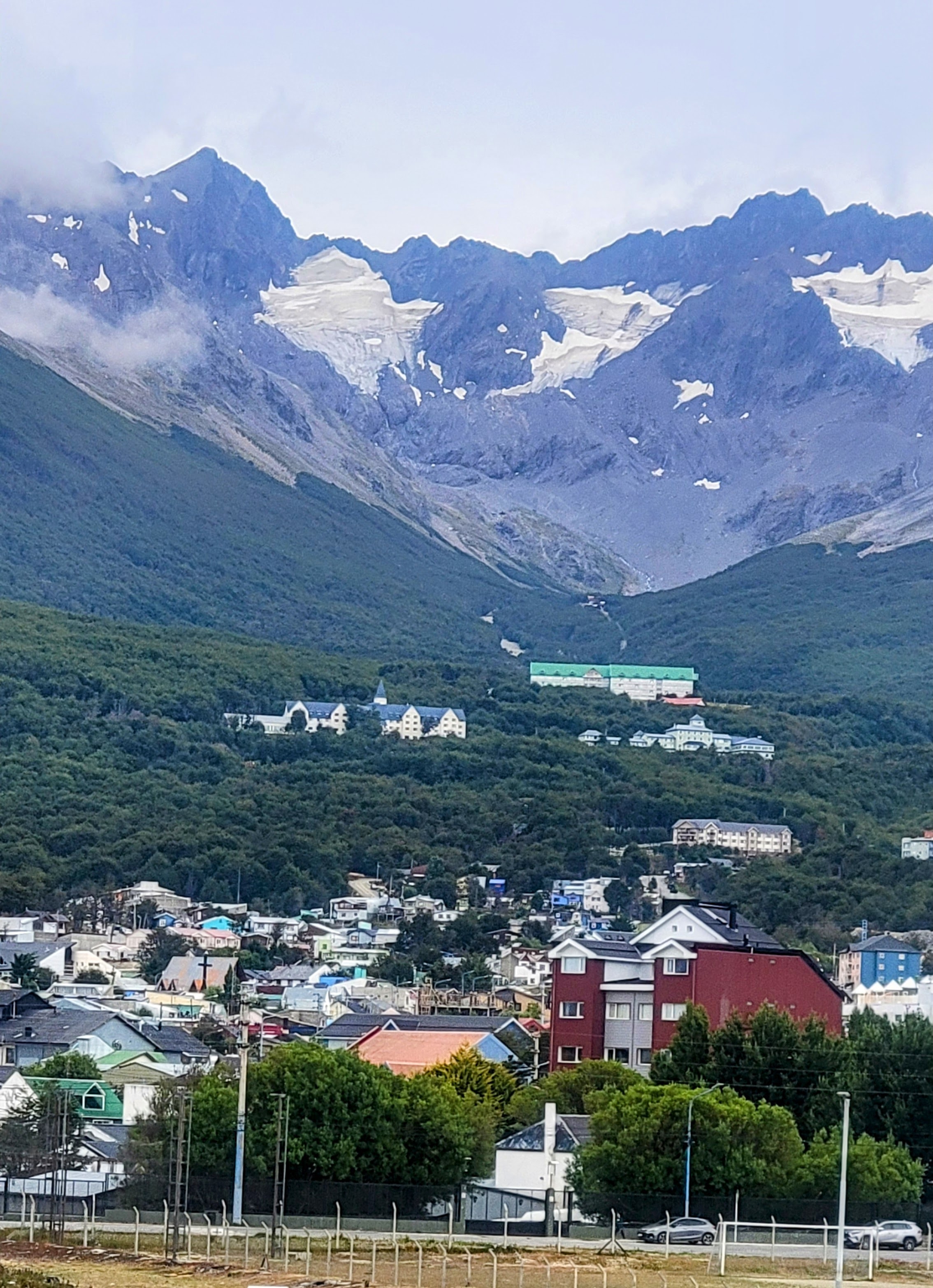 Ushuaia Argentina. After cruising glacier alley and the Beagle Channel we arrived at another outpost known as the southern-most city in the world. It was once a penal colony and we toured the former prison turned museum. The harbor here was teeming with expedition ships making their last port before Antarctica. We enjoyed Submarinos (hot milk with chocolate sticks) at Laguna Negro cafe. The hokey Train Trolley gave us a nice tour around town although we wished we could have been riding the “Train at the End of the World” tourist train. This was a rare South American tourist town where English was widely spoken. The Argentine Peso is a story in itself. The official exchange rate was 185ARP per dollar but on the street we received 350ARP/USD. Credit cards were a little scary but at least our cards gave us a good rate.