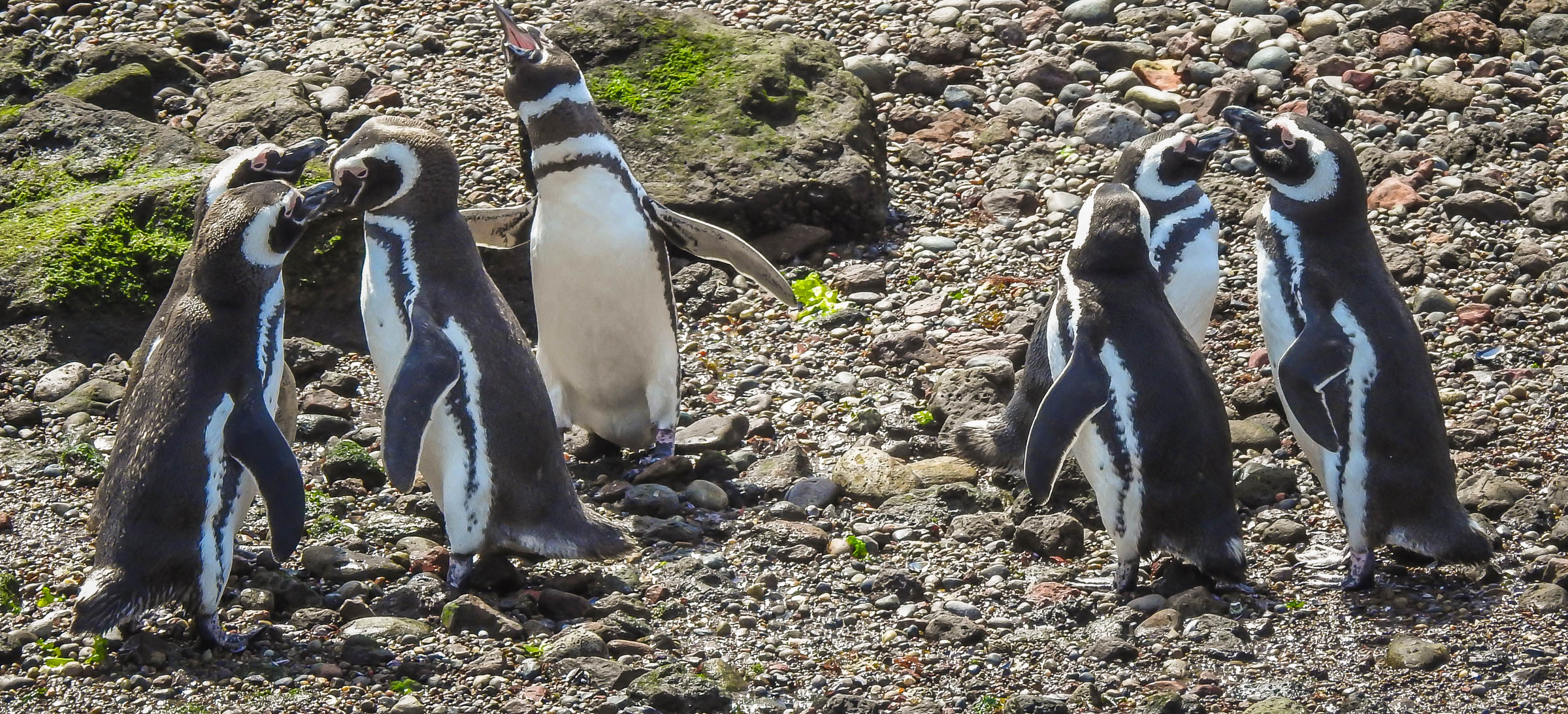 Puerto Madryn Argentina. This is where we got up close to the Magellinic penguins. The Tombo Preserve here is home to thousands of penguins rearing their young. These penguins live in ground burrows and stand about 2 feet tall and weigh about 8 to 14 pounds. They are totally unafraid of humans and wander freely around the tourists. Don’t get too close though, they have wicked beaks. We also saw the unique guanaco, a wild llama like mammal. This is also the area where orcas are seen snatching dinner off the beach. Lots of wildlife here.