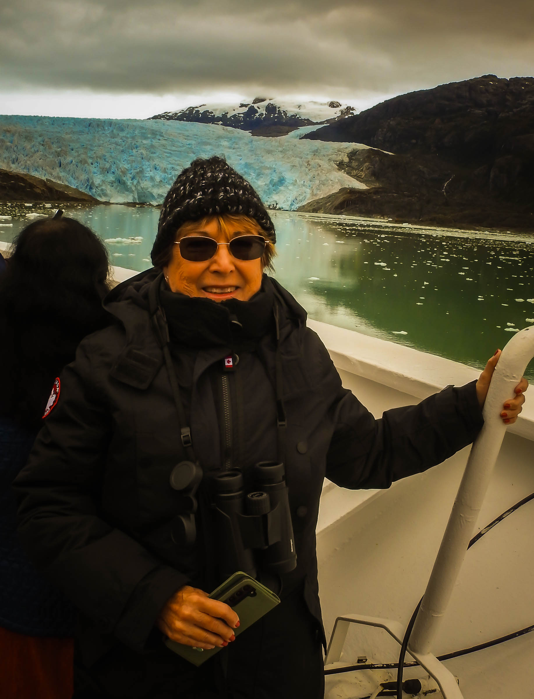 Cruising Chilean Fjords. Here the captain took our big ship up close to the many glaciers in the Patagonian district of Chile. We got close to Fjordo Glacier and El Brujo Glacier.