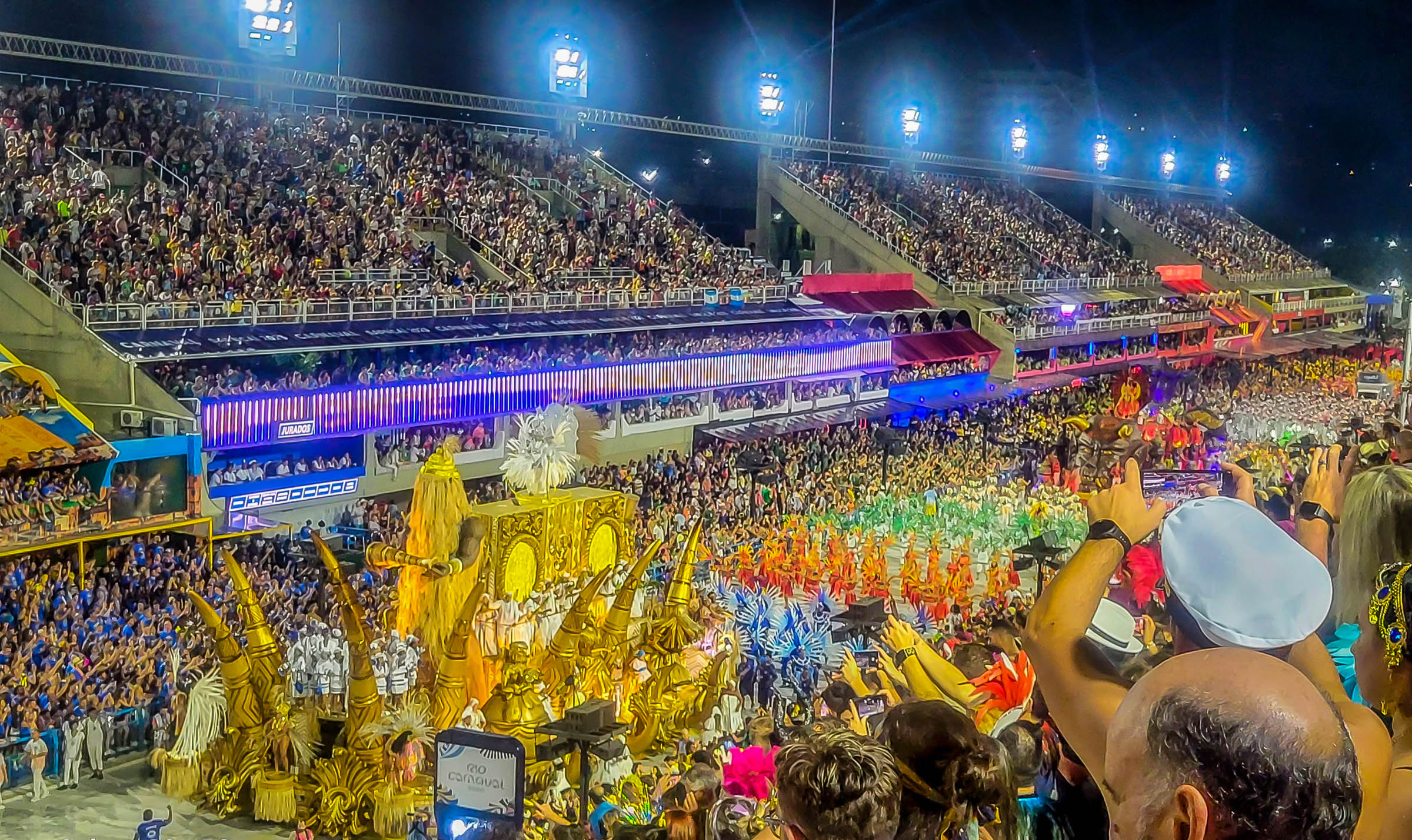 Rio de Janeiro Brazil We got up early to witness the sail in past Sugarloaf Mountain into Rio’s harbor. The setting is spectacular. Christ the Redeemer sits high above the city. We docked right downtown but immediately noticed a very polluted harbor. We took a Holland America tour to Christ the Redeemer statue using a cog railway and stairs. We were lucky it wasn’t overcrowded that day so we had time for an extended tour past beautiful homes in the Ipanema and Copacabana neighborhoods. We got a brief view of the beach too. It was Carnival time in Rio and the city goes crazy with official and unofficial parades affecting traffic and access to tourist sites. People from all over Brazil come to Rio for Carnival. Since we had an overnight we were able to take the HAL offered trip to the Sambadrome for the Superbowl of Brazil. 11 months of planning and millions of dollars are spent on this event. After seeing the huge favelas (slums) of Rio we wondered if those resources could be better spent elsewhere. It was crowded, loud, relentless, colorful and tiring. There were some topless performers, lots of thongs. Our bus got us there by 8PM, the first Samba “School” paraded from 10 to 11. We stayed for 3 schools and caught the first bus back to the ship. We got back at 3AM! It was an experience to remember but not repeated. Many of us wished we had visited Rio some other time. Rio was hot and humid.