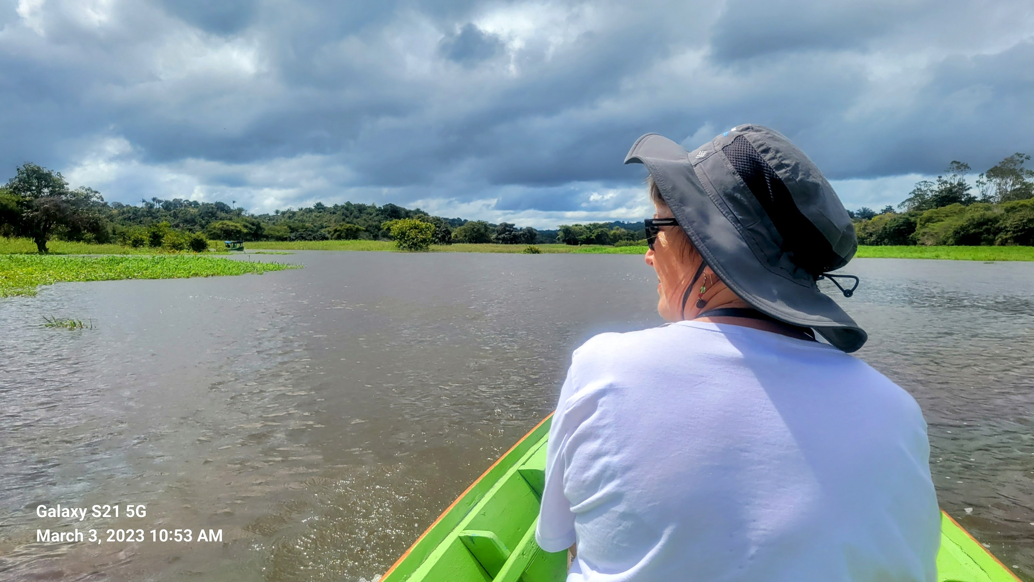 Boca da Valeria Brazil This was probably the most unusual stop of the entire cruise. Our giant ship anchored just off a small river and tiny village miles from any city. The native people shared some pets and costumes. Here we took an even smaller boat up the smaller river past more water lilies and homes. This entire world is river based and most of these people will never drive or fly, but they may have smartphones soon.
