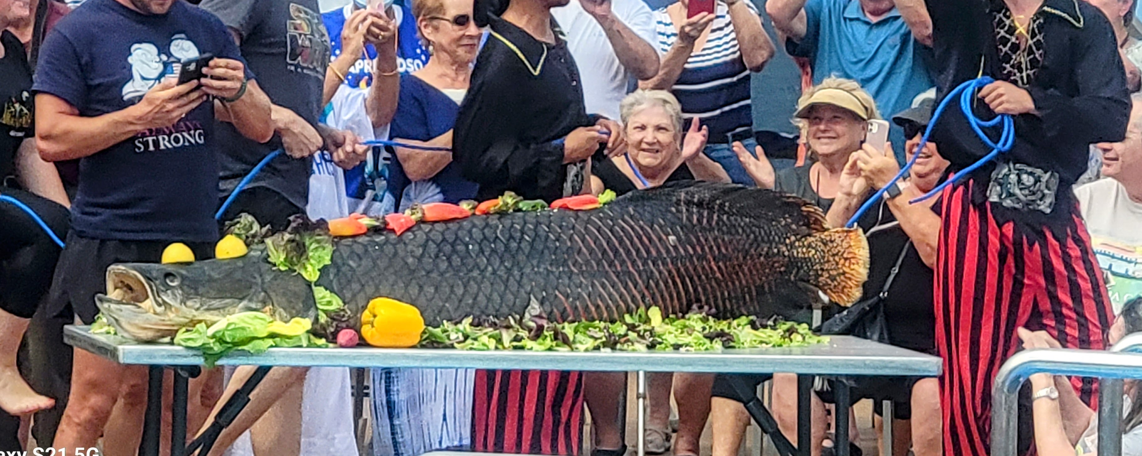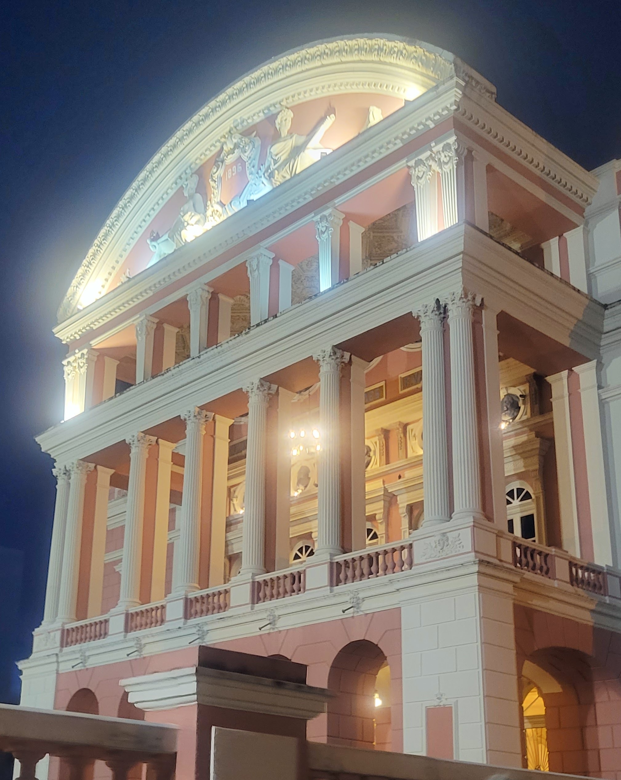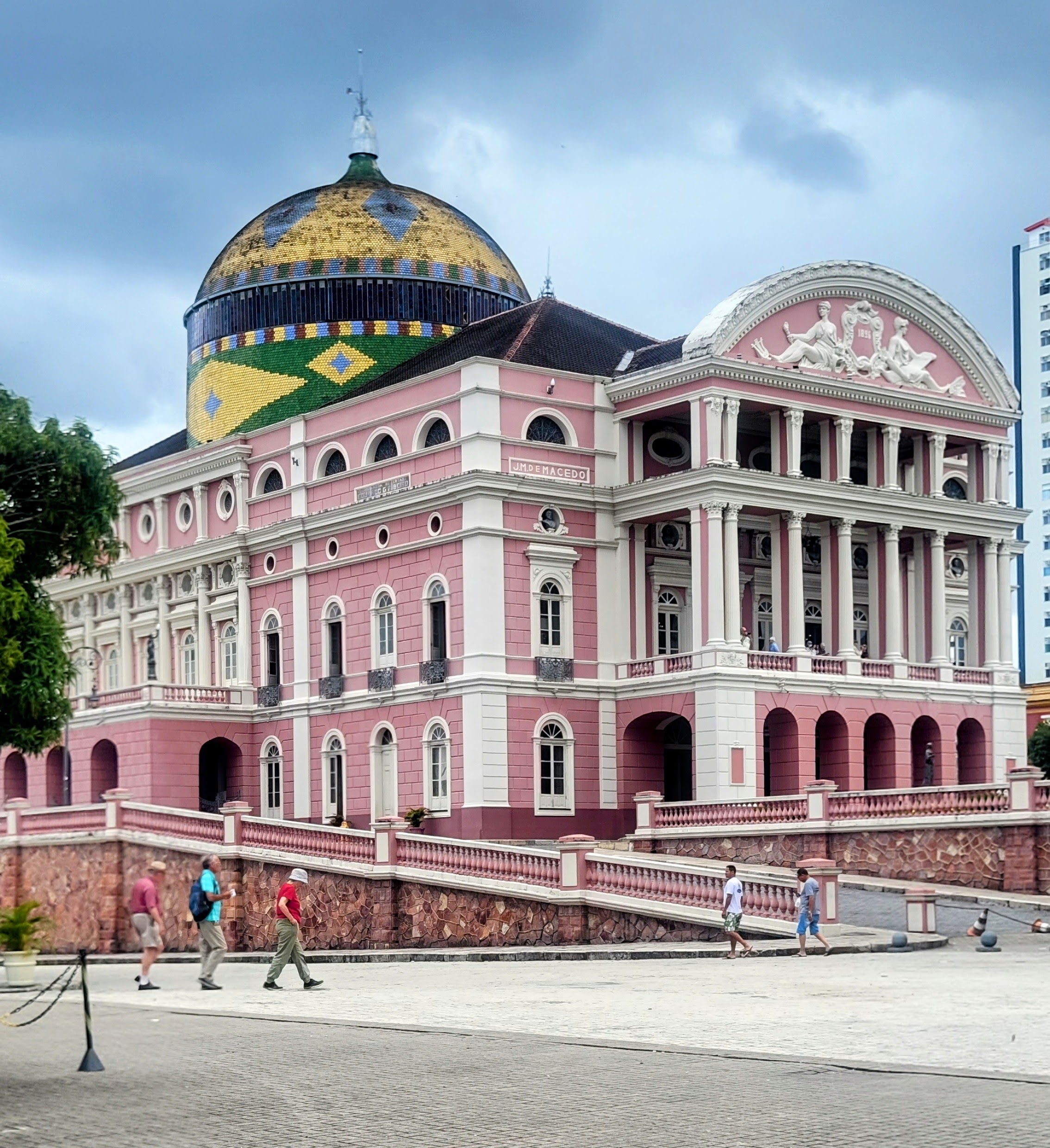 Manaus Brazil Manaus is over 900 miles up the Amazon from the Atlantic Ocean. We were fortunate to have 2 days and 1 night there. This is a very historic city since the rubber boom of the late 19th century. It was called one of the gaudiest cities in the world. No extravagance was too much. The Opera house built in 1896 cost 10 million dollars. It was built with marble from Italy, glass from France and iron from England. The first performers traveled 3 months from Europe and died from yellow fever before they ever got on stage! It has now been restored and is still spectacular. We had a tour during the day and that night HAL arranged a special big band performance just for our group. The acoustics, lighting and performance were unforgettable and a highlight of the entire cruise. Next day we toured up river to a small village then enjoyed lunch at an outdoor restaurant serving Piraracu an air breathing native fish growing up to 10′ and 485 lbs. Delicious.