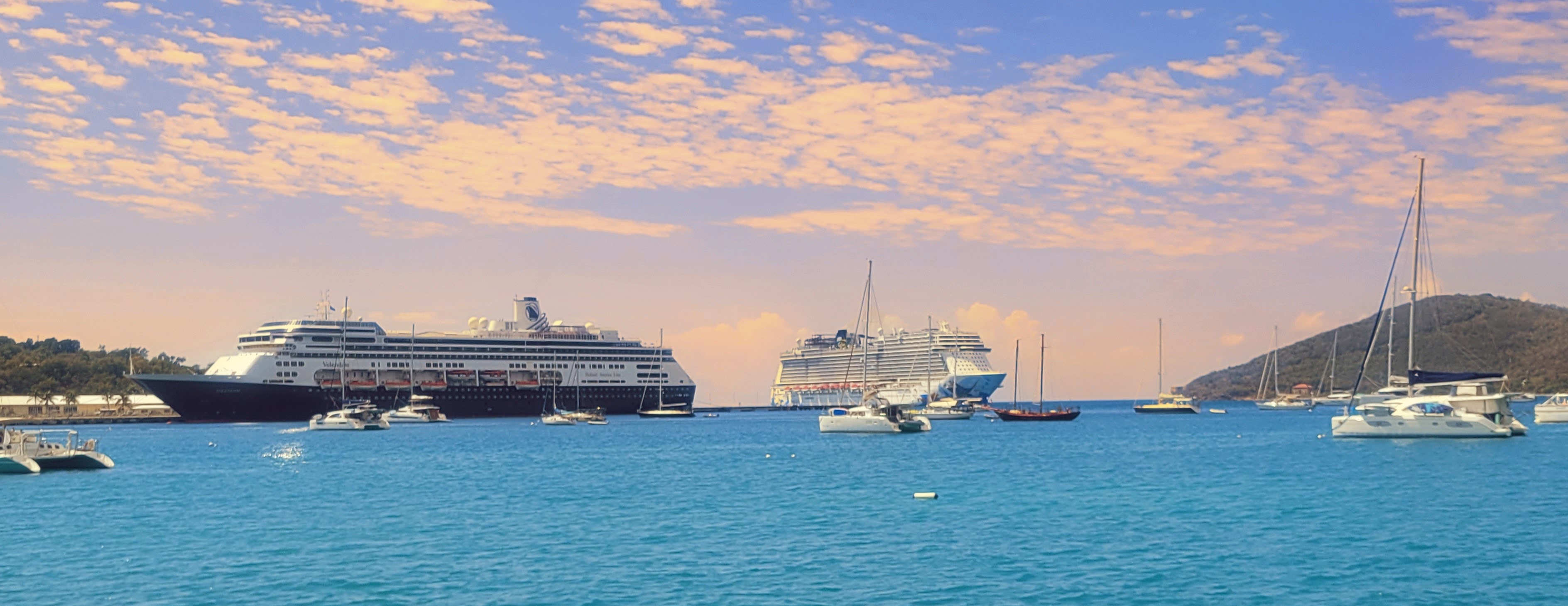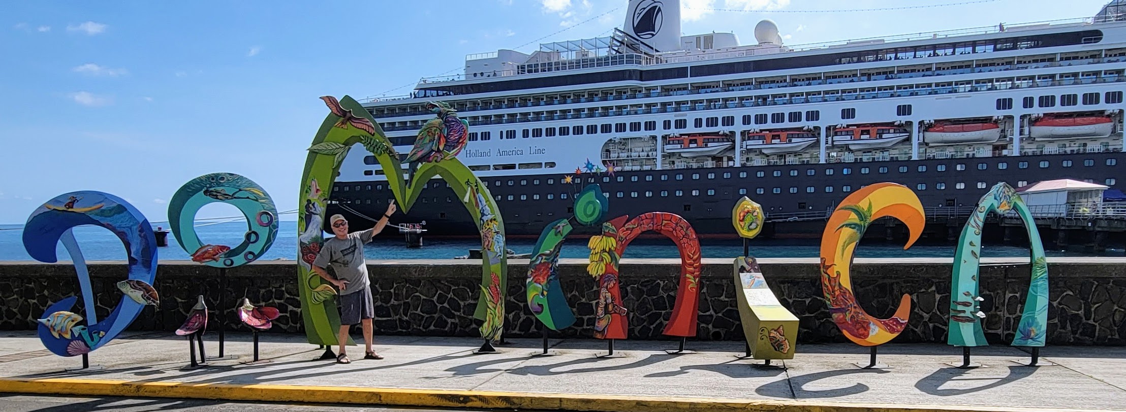 Roseau Dominica Dominica was surprisingly one of our favorite ports. At the last minute we decided to take the HAL Hot Springs Escape tour. It was great fun as we swam upstream in the Titou Gorge slot canyon to a waterfall and then soaked in Wotten Waven natural hot pools. This beautiful island has at least 4 volcanos and 365 rivers and is nicknamed “The Nature Island of the Caribbean”. Locals celebrate all its healthy living features and call it the longevity island. On a sad note while sailing from Barbados to Dominica a guitar player in the house band suffered a medical emergency and passed away before we could reach a hospital. We didn’t know until late that day and the entire ship was saddened. He was 32 years old.