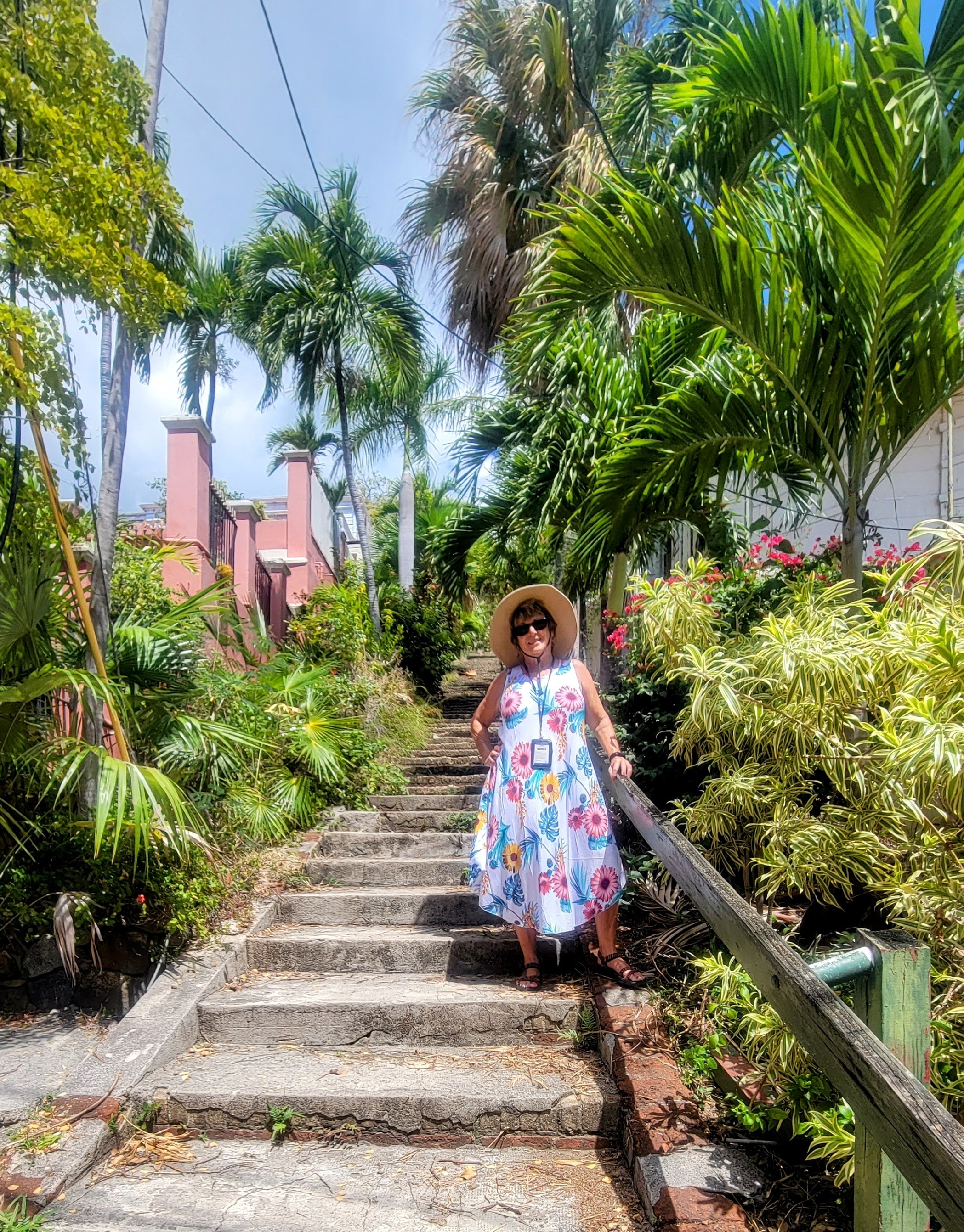 Charlotte Amalie St. Thomas USVI We’ve been to St. Thomas many times so we just did our own walking tour of this busy cruise port. The 99 steps led us to Bluebeards Castle. Unfortunately it and the adjoining inn were closed and for sale. Pandemic victims?