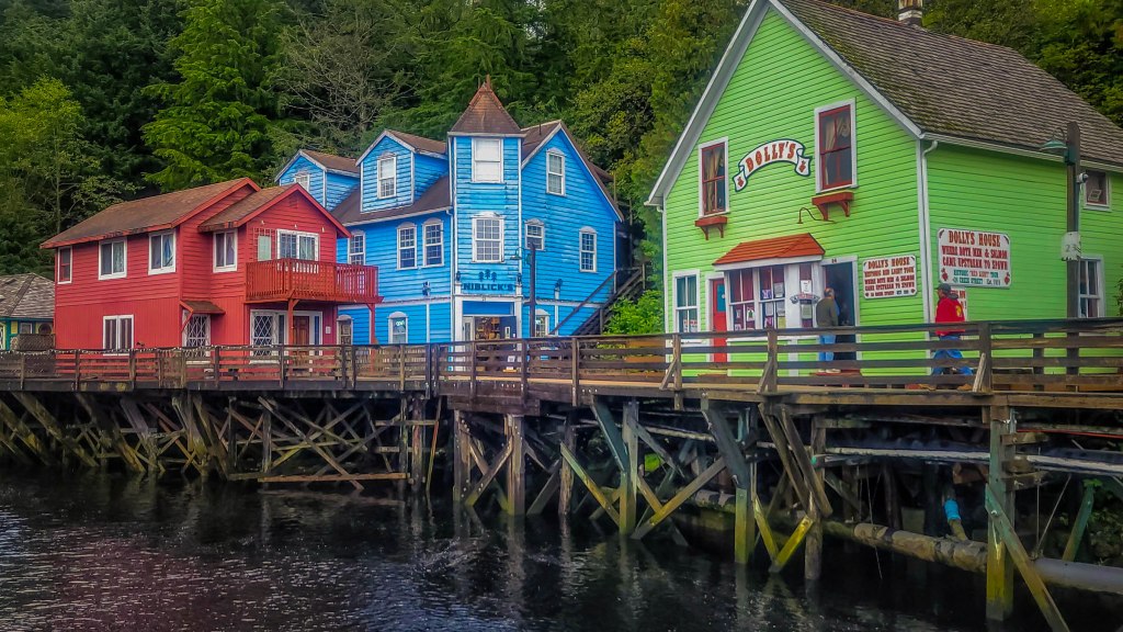 Ketchikan was our last port of call on our Alaska cruise. As with our other stops this one was more enjoyable since ours was the only visiting ship that day. Creek St is the historic red light district that operated until 1954. A local salmon hatchery had thousands of fish following their DNA upstream to spawn. Ketchikan has the world’s largest collection of totems which began to be restored by the CCC during the Roosevelt administration.